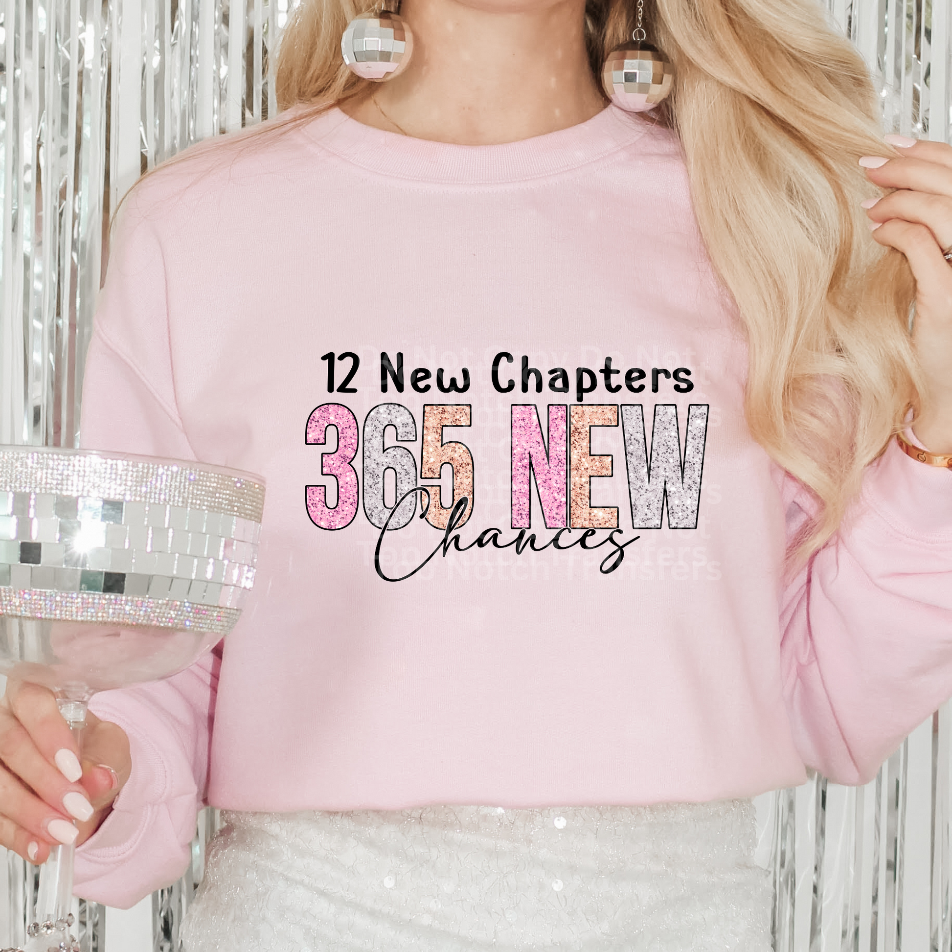 12 New Chapters 365 New Chances Pnk/Slvr Faux Glitter DTF Transfer