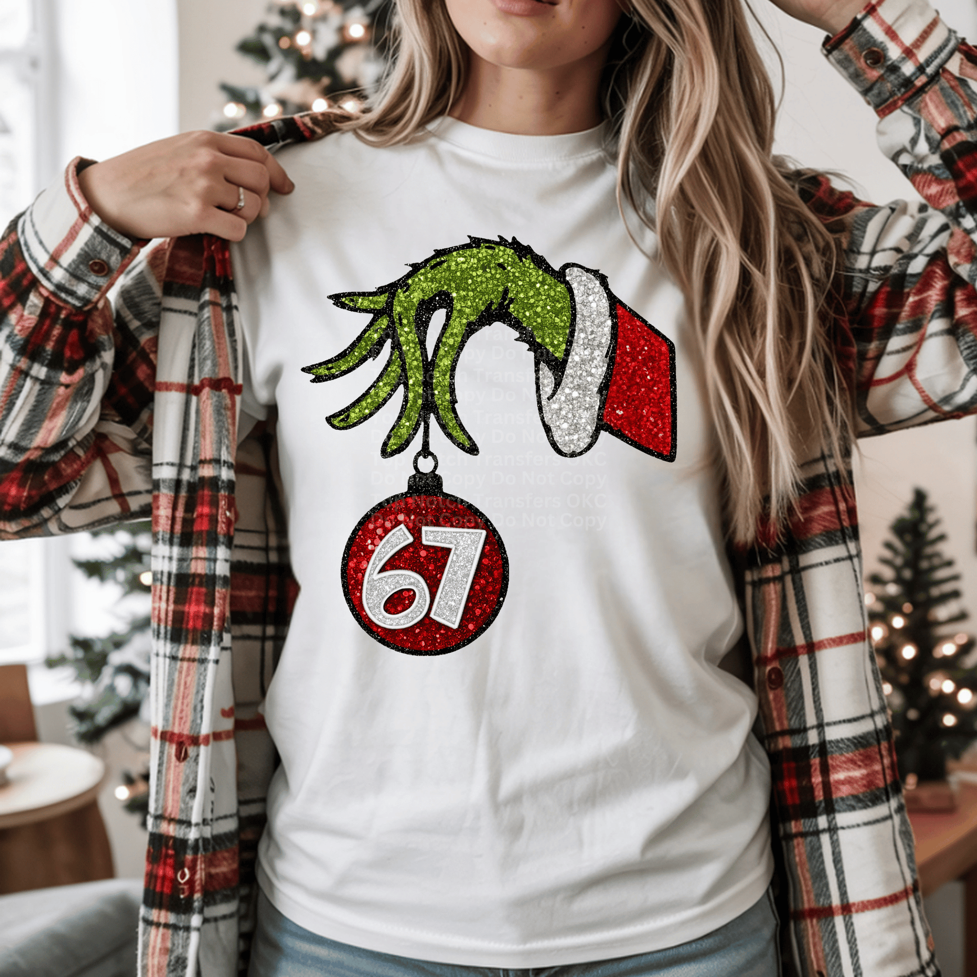 6 7 Ornament Faux Glitter Christmas DTF Transfer
