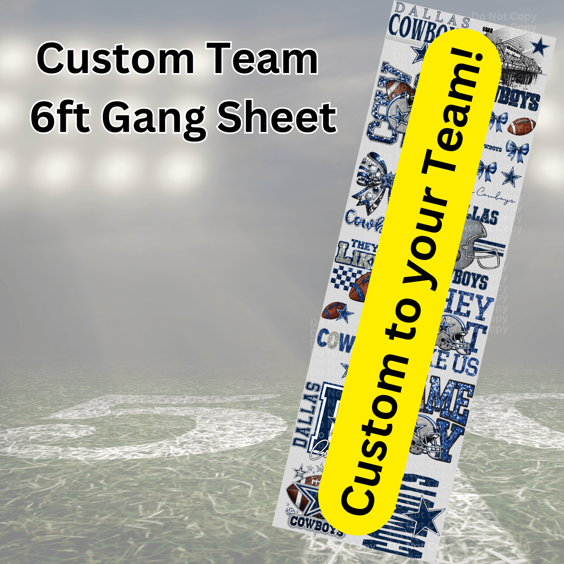 6ft Custom Team Gang Sheet *Put requested team in Checkout notes* For local team mascots ( i.e. Wildcats) please check with us on design availability prior to ordering.