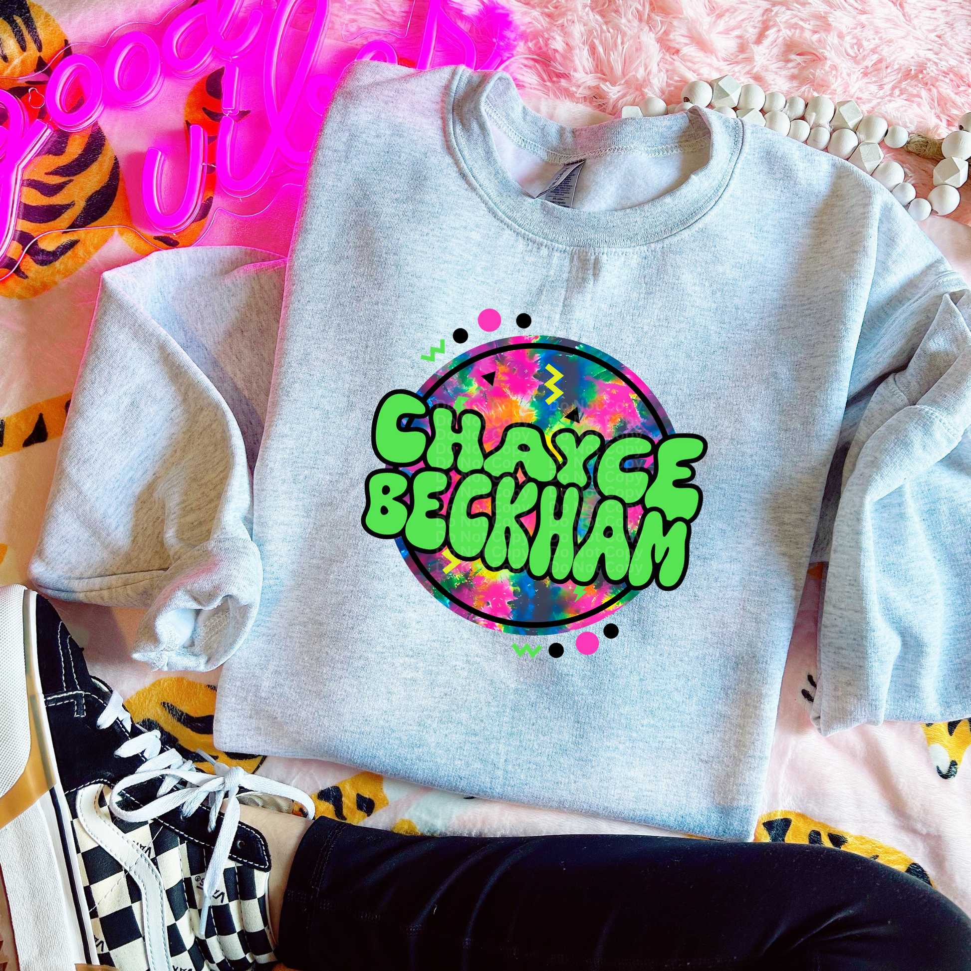 B3ckham Green Letters over Tye-Dye Circle DTF Transfer