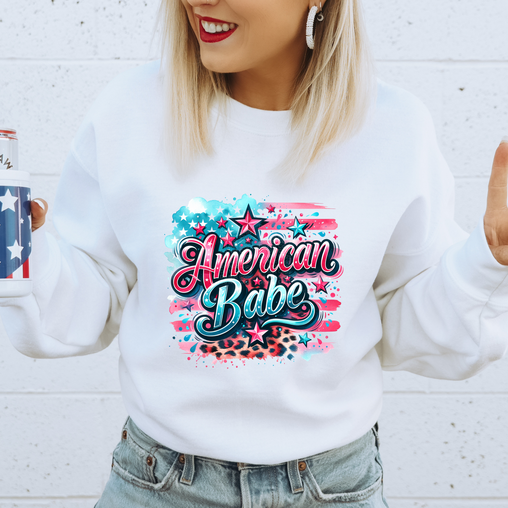 American Babe Pink & Blue with Flag and Cheetah Print Background DTF Transfer