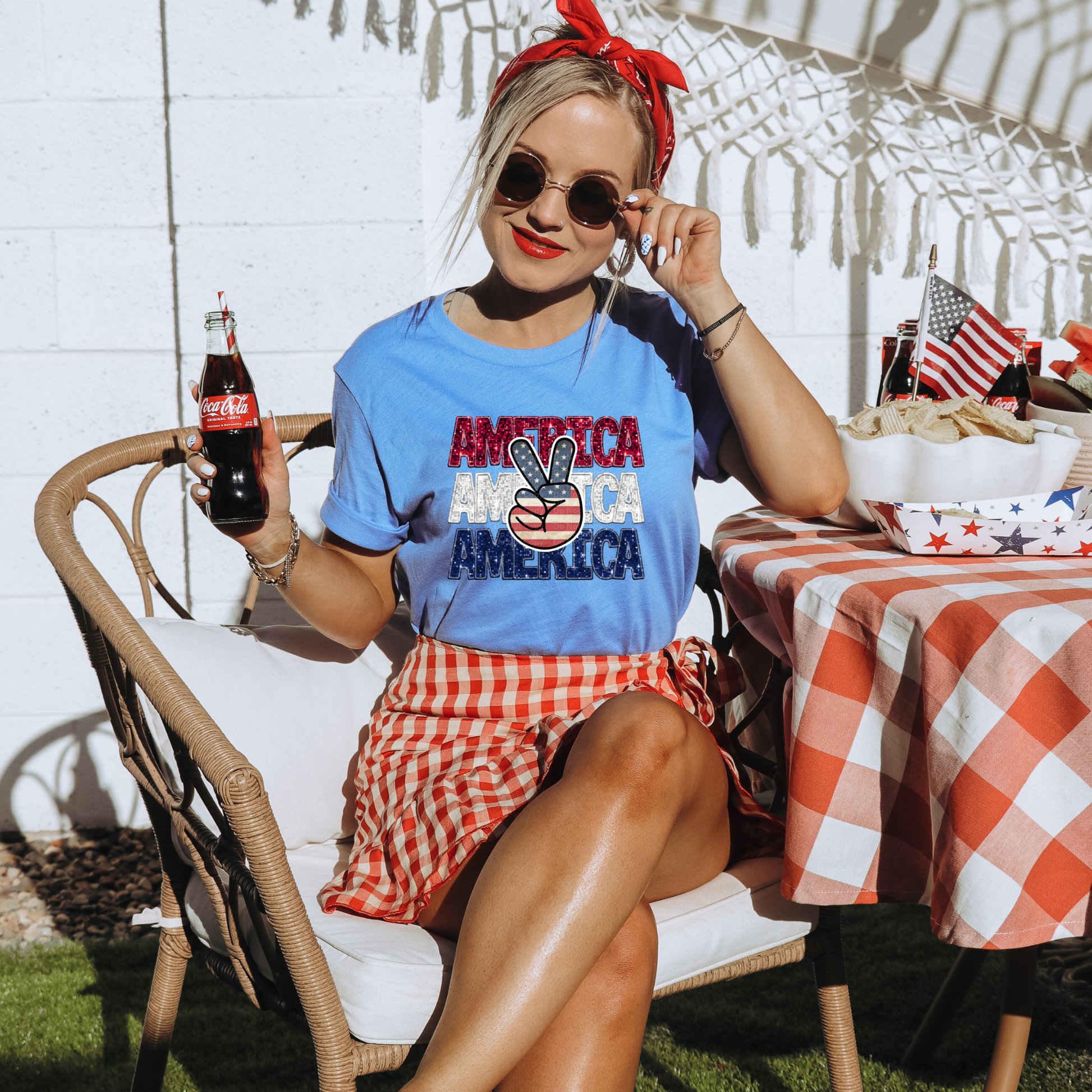 America Faux Sequins Patriotic Peace Hand DTF Transfer