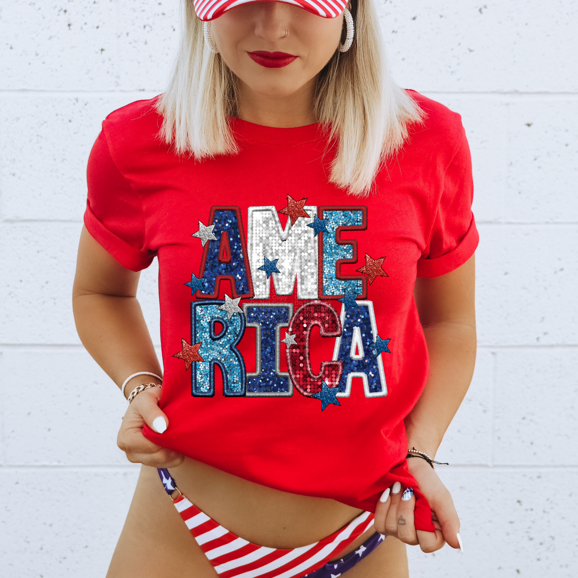 America Faux Sequins with Faux Glitter Stars DTF Transfer