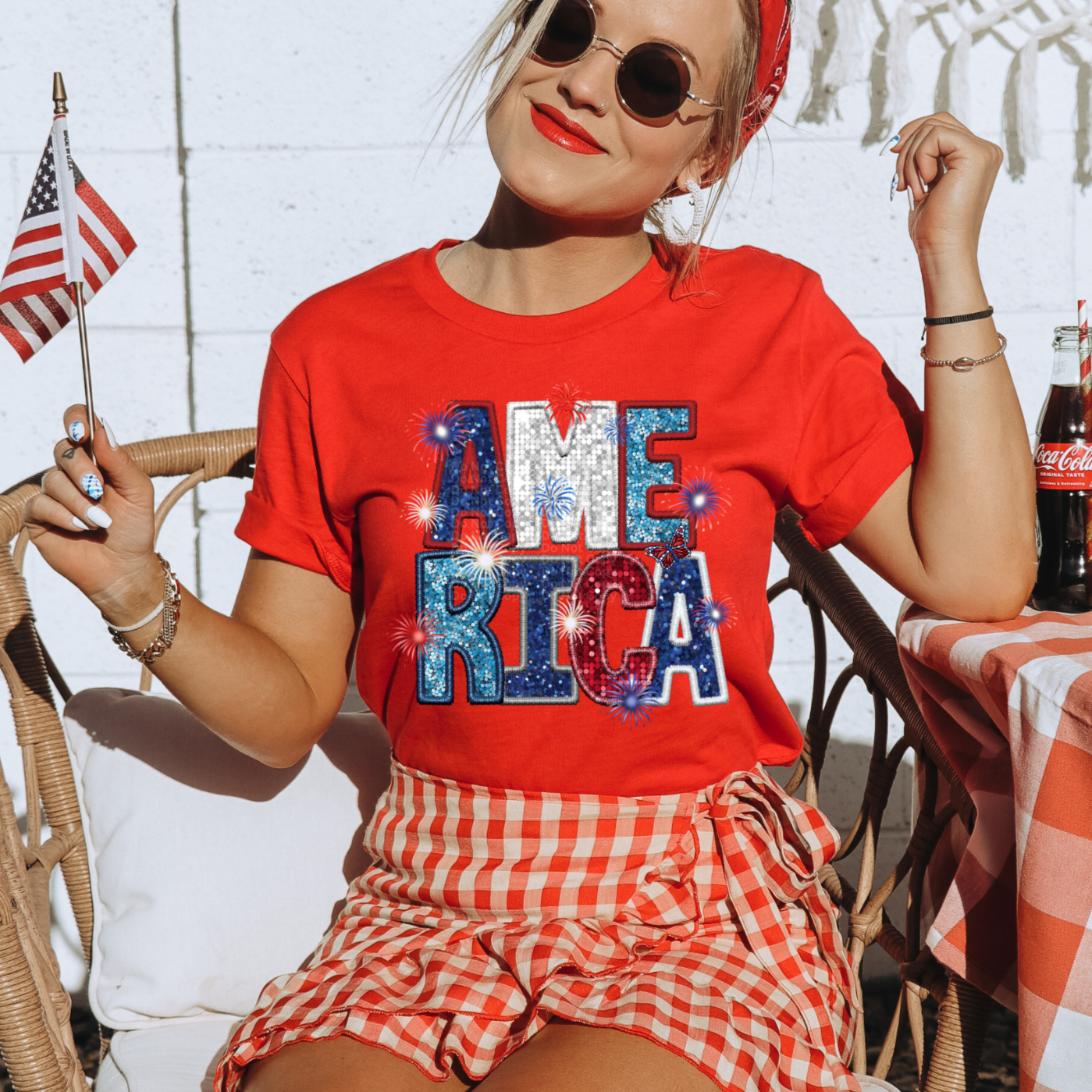 America Faux Sequins with Fireworks and Small Butterfly DTF Transfer