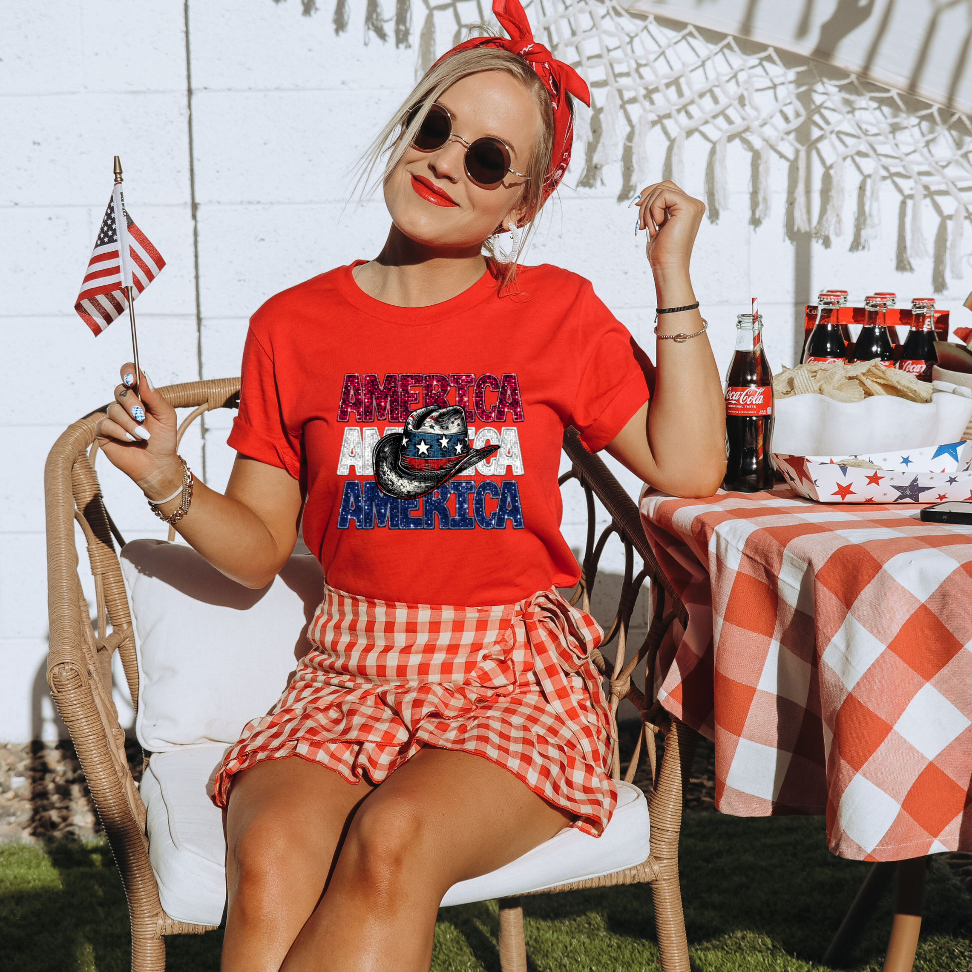 America Red White & Blue Faux Sequins Cowboy Hat DTF Transfer