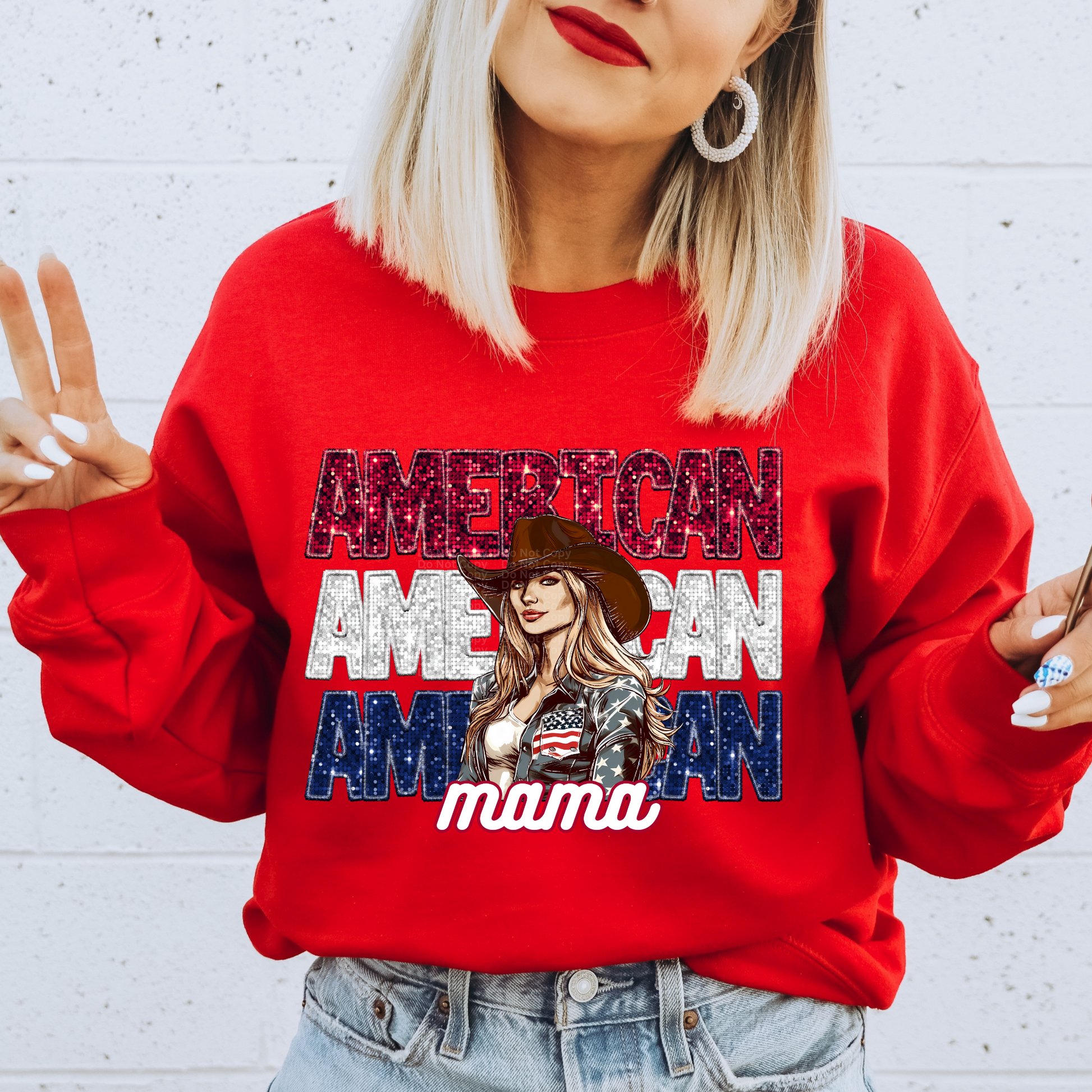 American Faux Sequins Cowgirl Mama DTF Transfer
