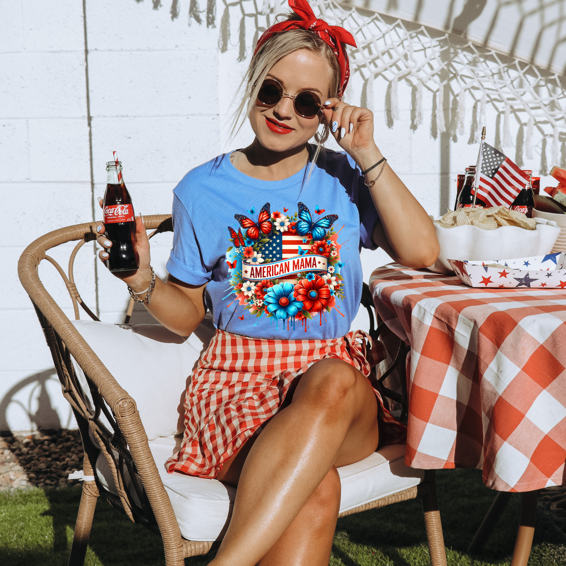 American Mama Banner over Flag with Flowers & Butterflies DTF Transfer