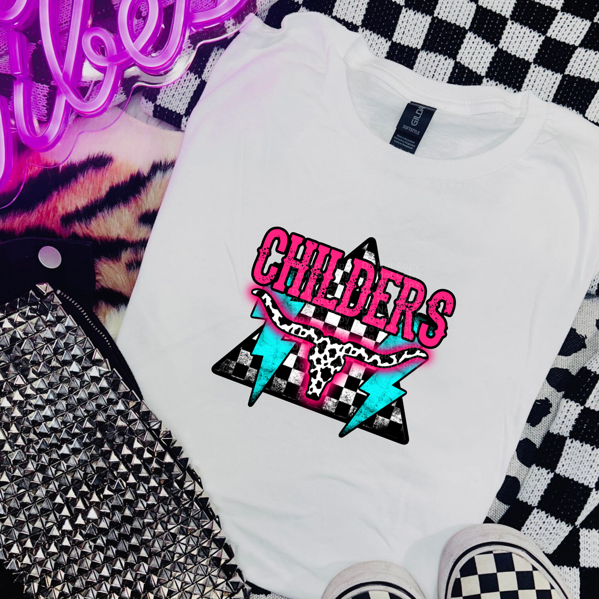 Ch!lders Pink, Blue & Checkered Triangle DTF Transfer
