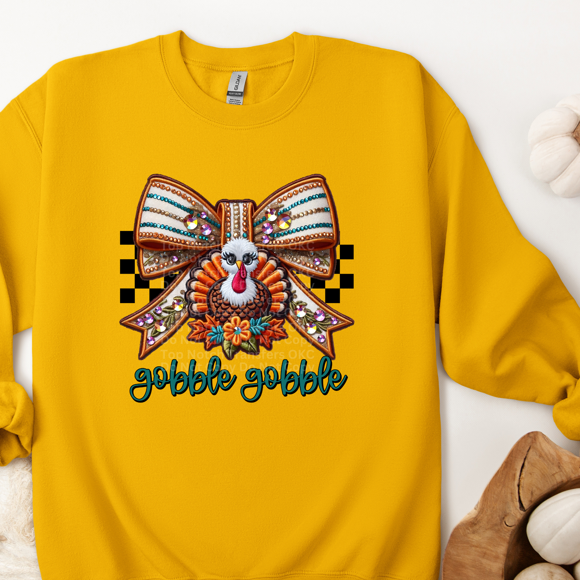 Gobble Gobble - Faux Embroidery/Rhinestone DTF Transfer