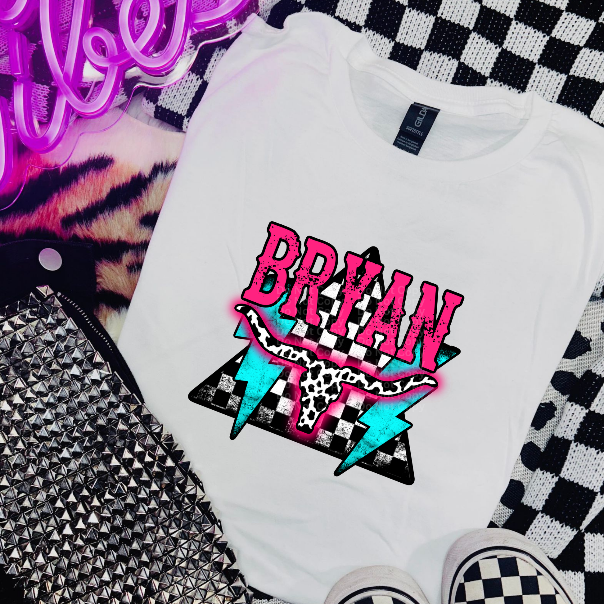 Bry@n Pink, Blue & Checkered Triangle DTF Transfer