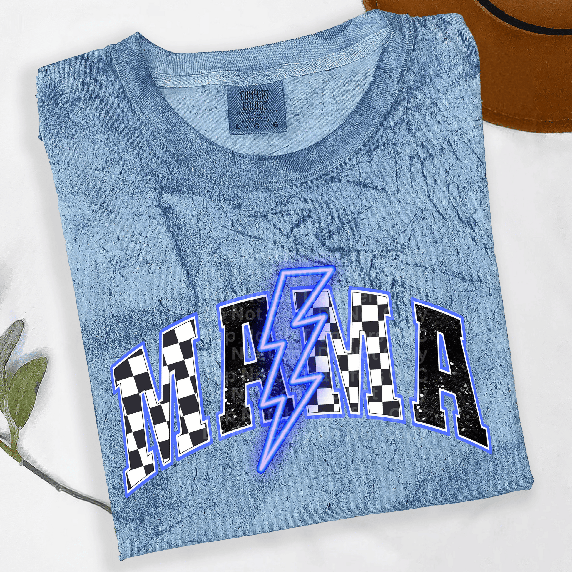 Checkered Mama Neon Blue DTF Transfer