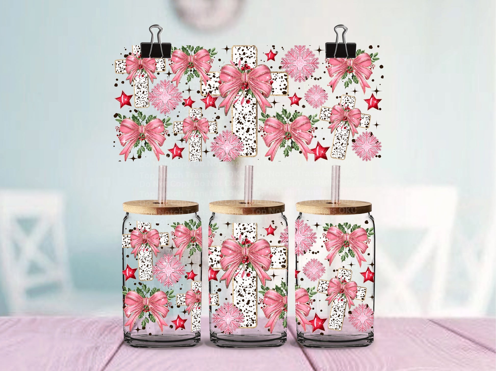 Christmas Dalmatian Print Pink Cross UV DTF 16oz Cup Wrap
