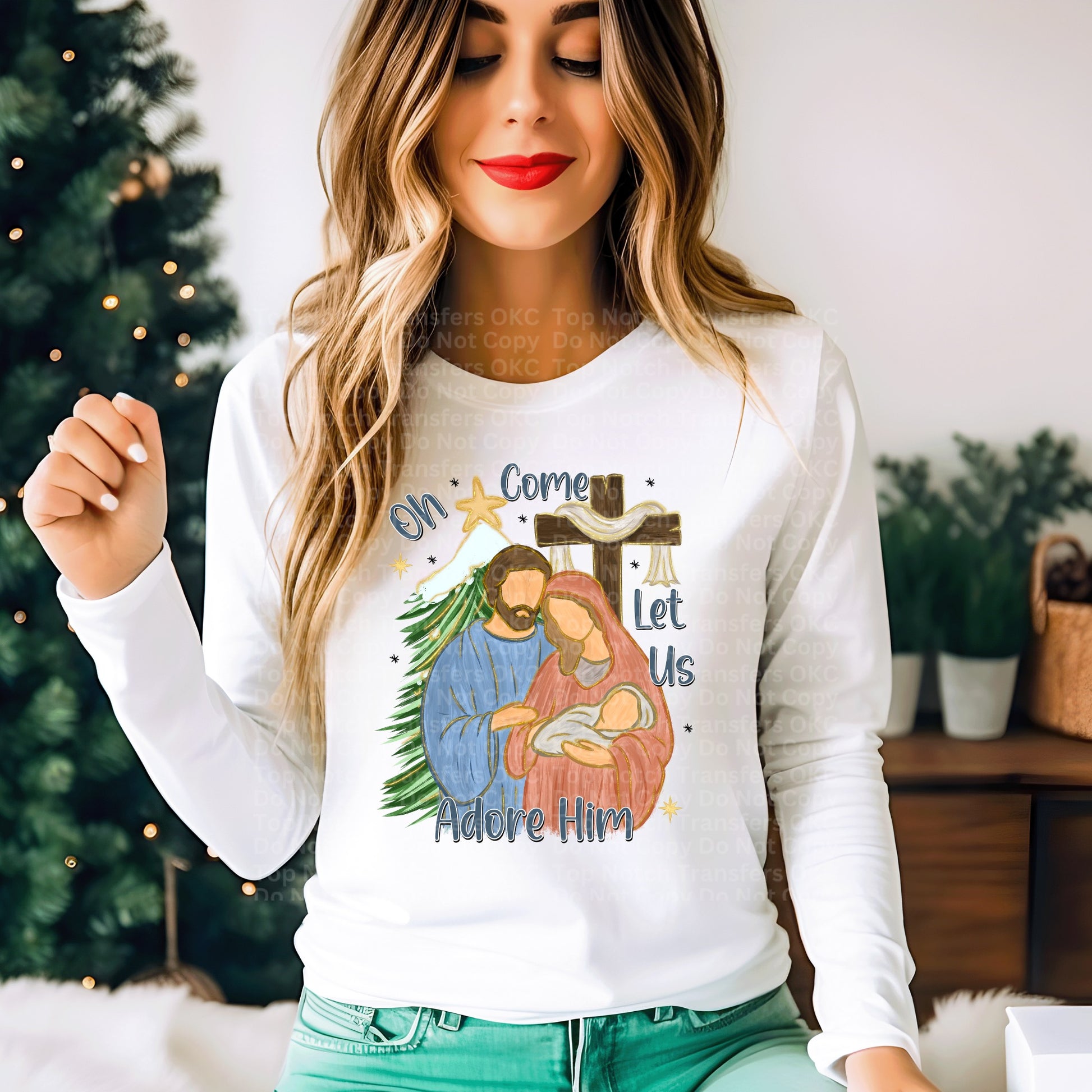 Oh, Come Let Us Adore Him Cross DTF Transfer