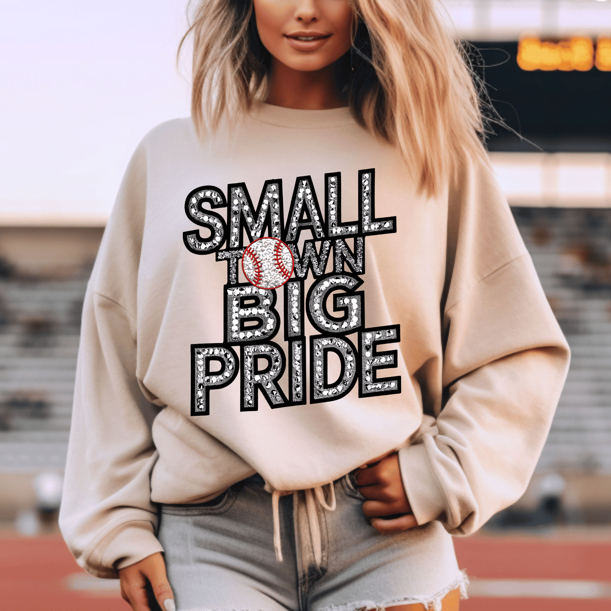 *Faux Rhinestone Baseball Small Town Big Pride DTF Transfer