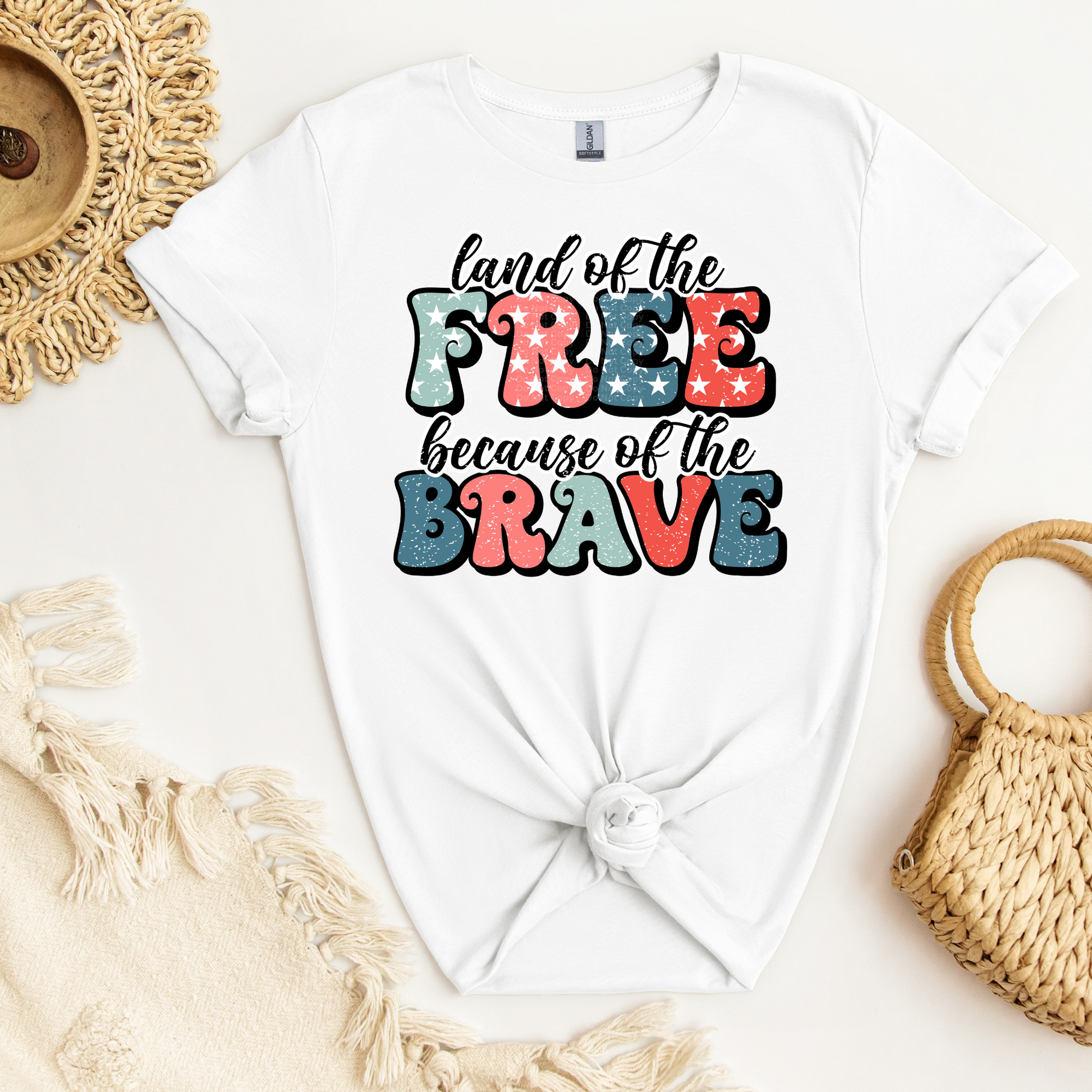 Land of the Free Because of the Brave - Pink & Blue DTF Transfer