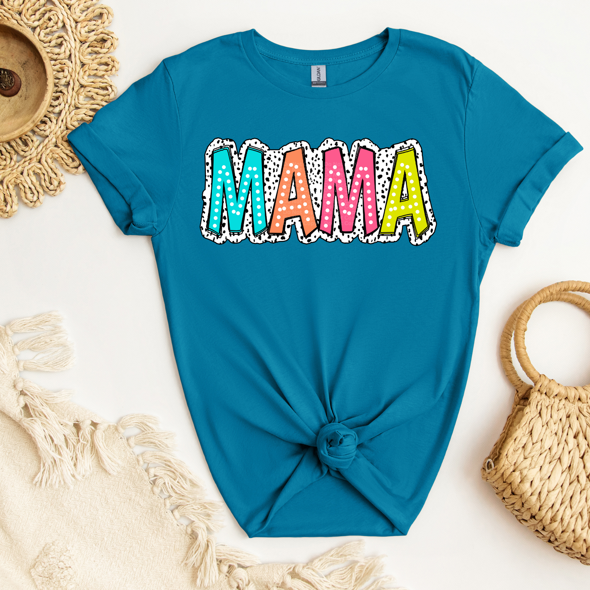 Mama - Colorful white dotted lettering over white/black background DTF Transfer