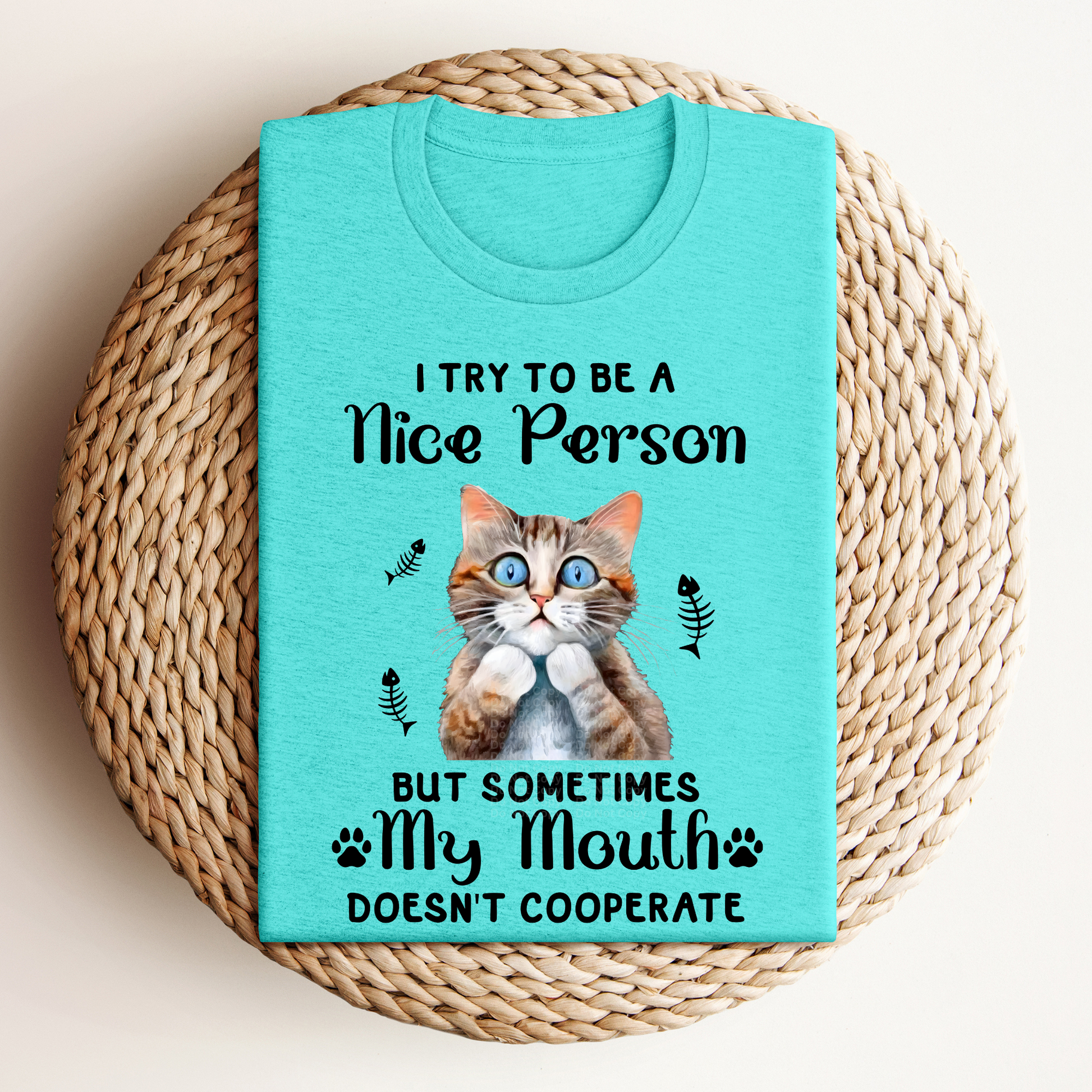 I Try to Be a Nice Person but Sometimes My Mouth Doesn't Cooperate Cat DTF Transfer