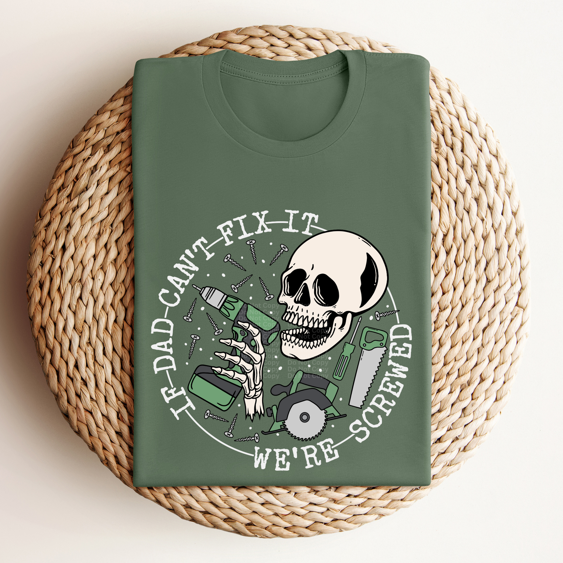If Dad Can't Fix It We're Screwed Skeleton W/Green Drill DTF Transfer