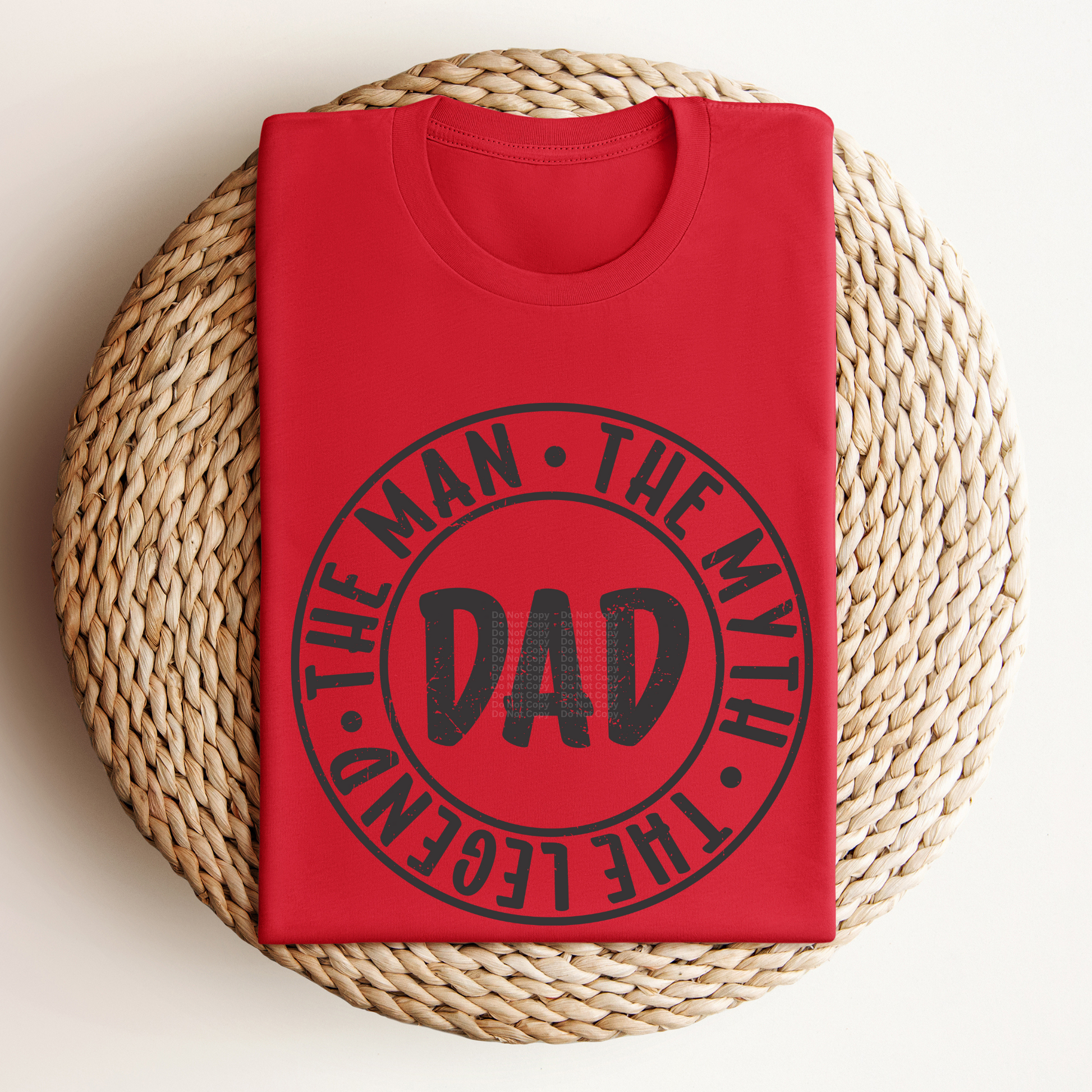 Dad The Man The Myth The Legend Dark Grey Circle DTF Transfer