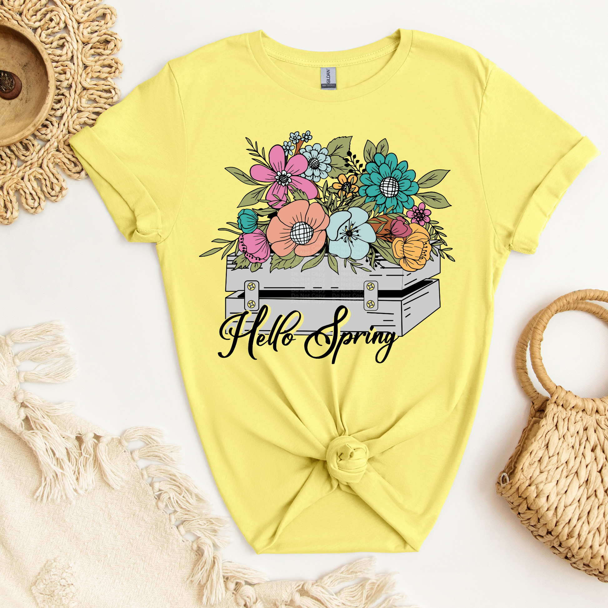Hello Spring Flowers in Wood Box DTF Transfer