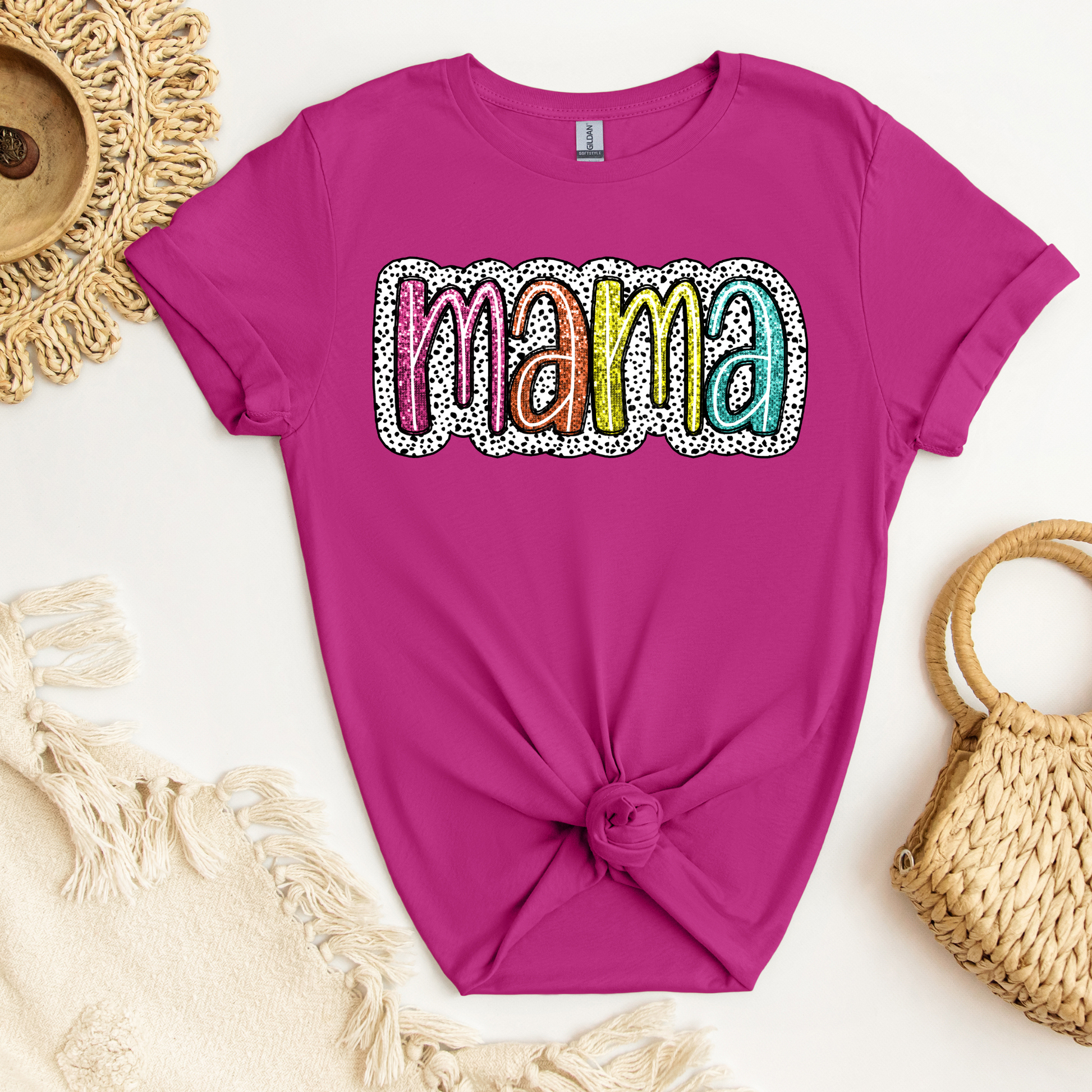 Mama - Colorful Faux Sequin on white/black Background DTF Transfer