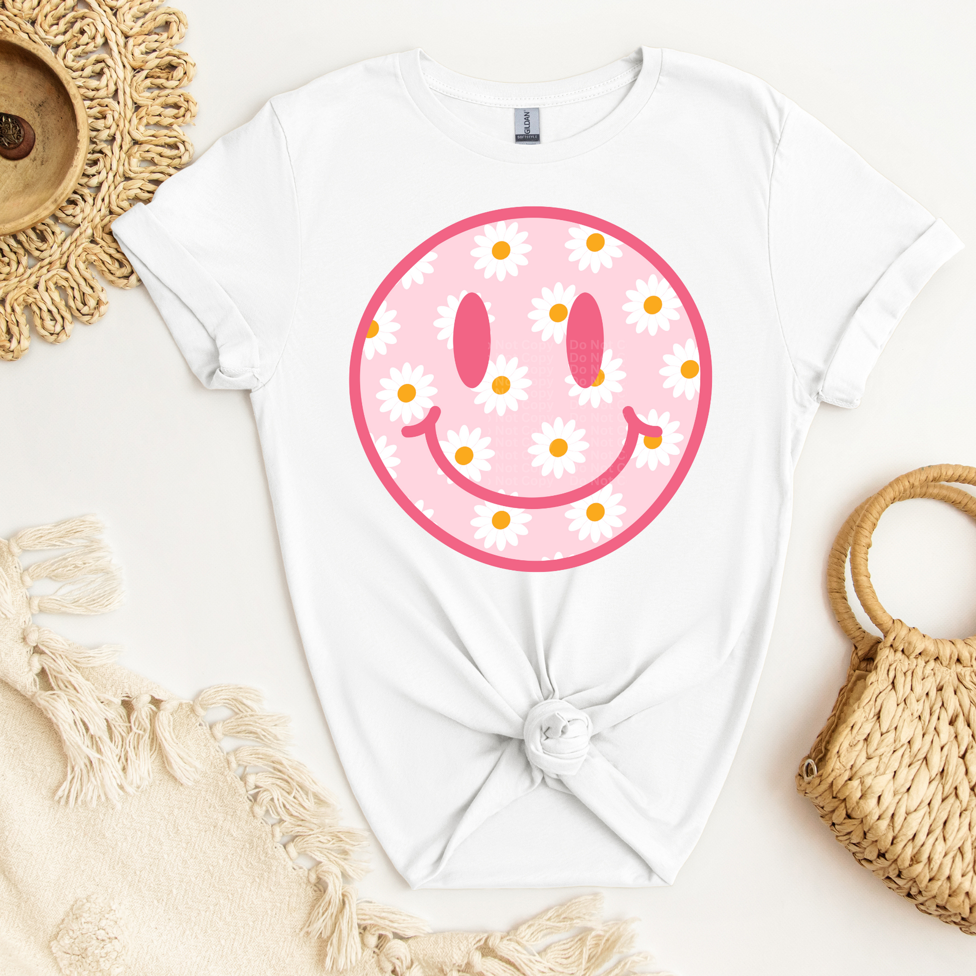 Pink Daisy Print Smiley DTF Transfer