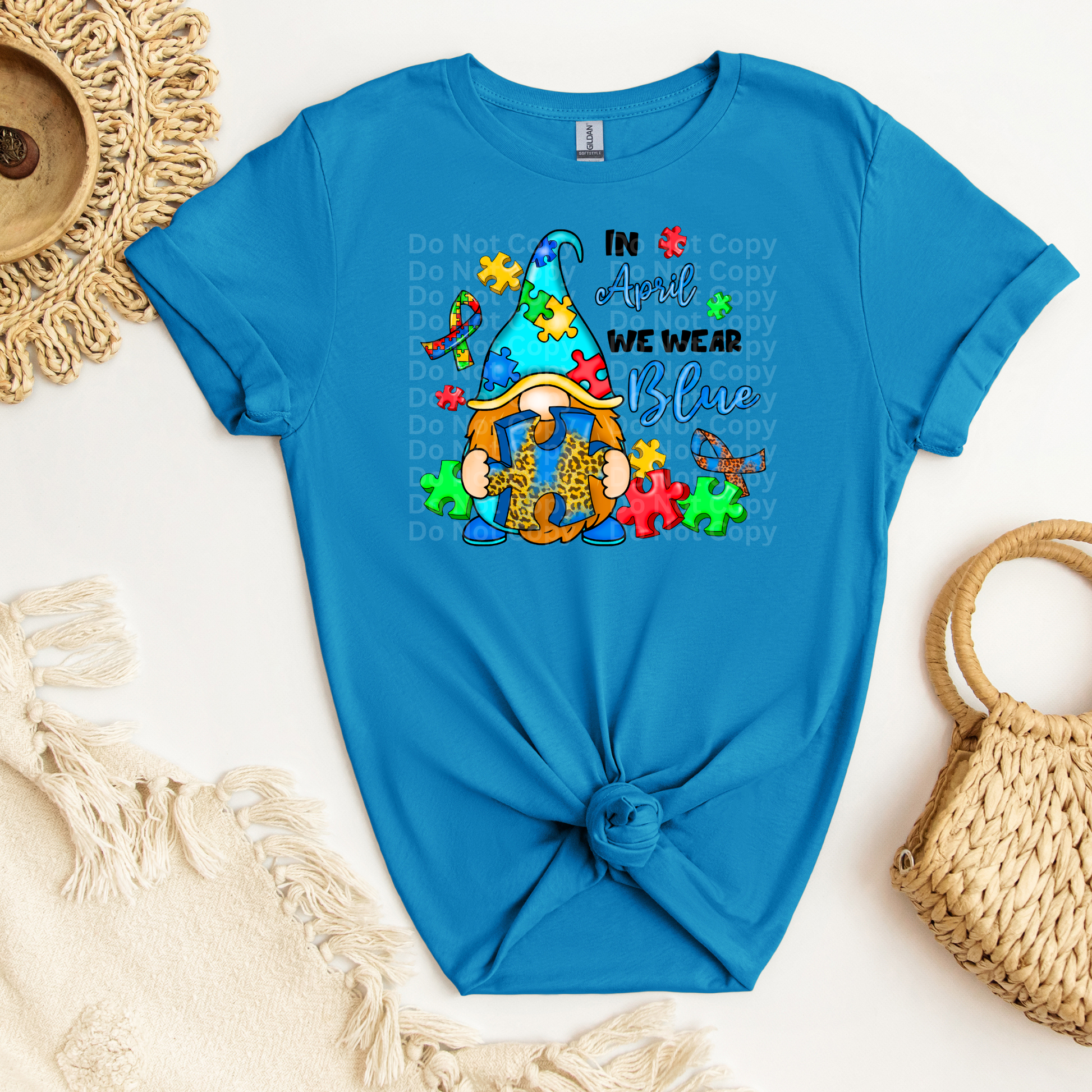 In April we wear blue gnome DTF Transfer