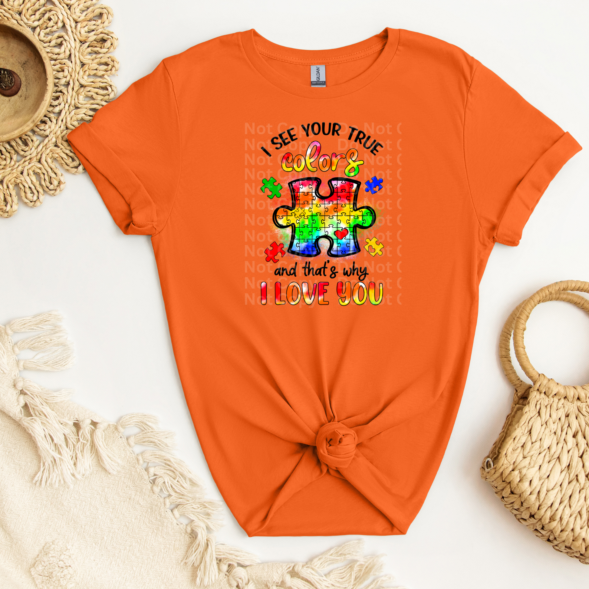 I See your true colors and that's why I love you Multicolored puzzle pieces DTF Transfer