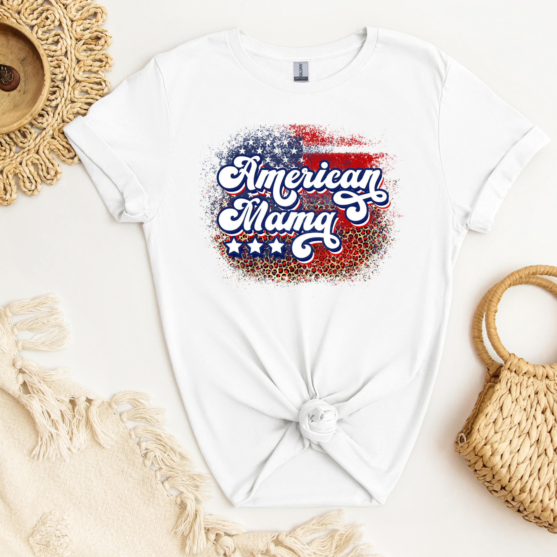 American Mama Faded Flag & cheetah print background DTF Transfer