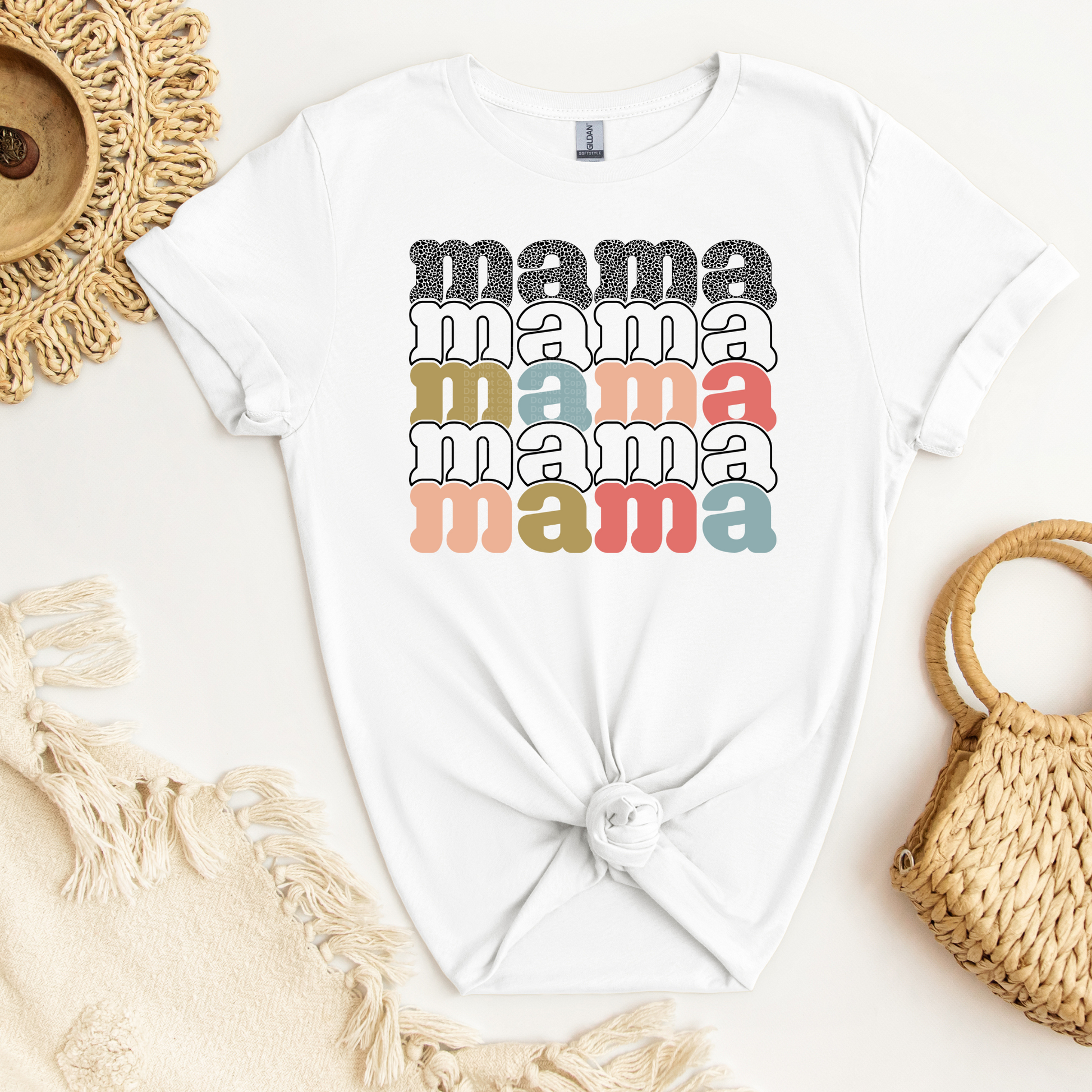Mama Stacked Leopard White Multicolored DTF Transfer