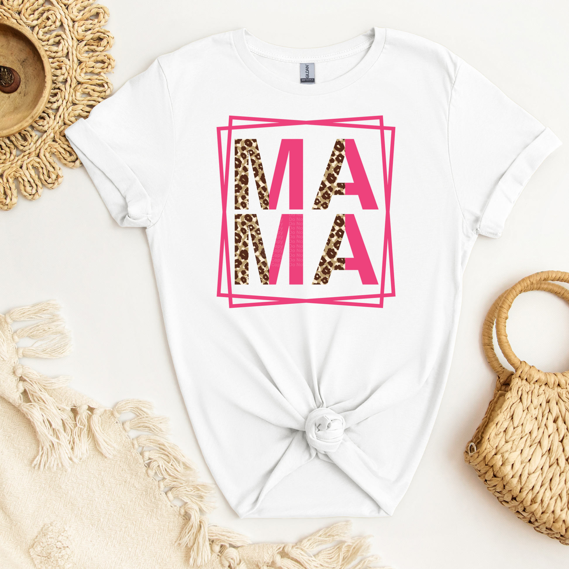 Mama Half Pink Half Leopard Square Frame DTF Transfer