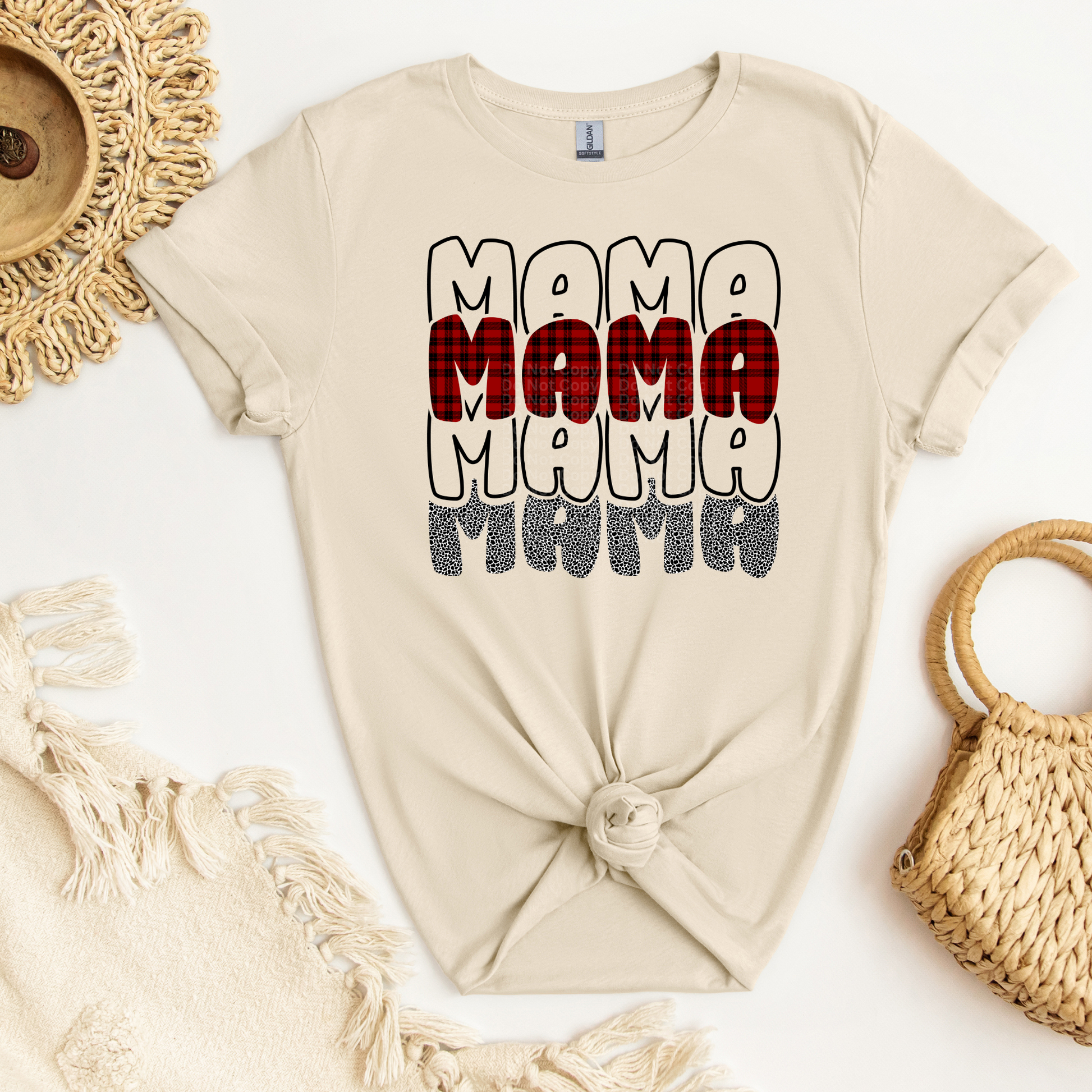 Mama Stacked Black Outline & Red Plaid DTF Transfer