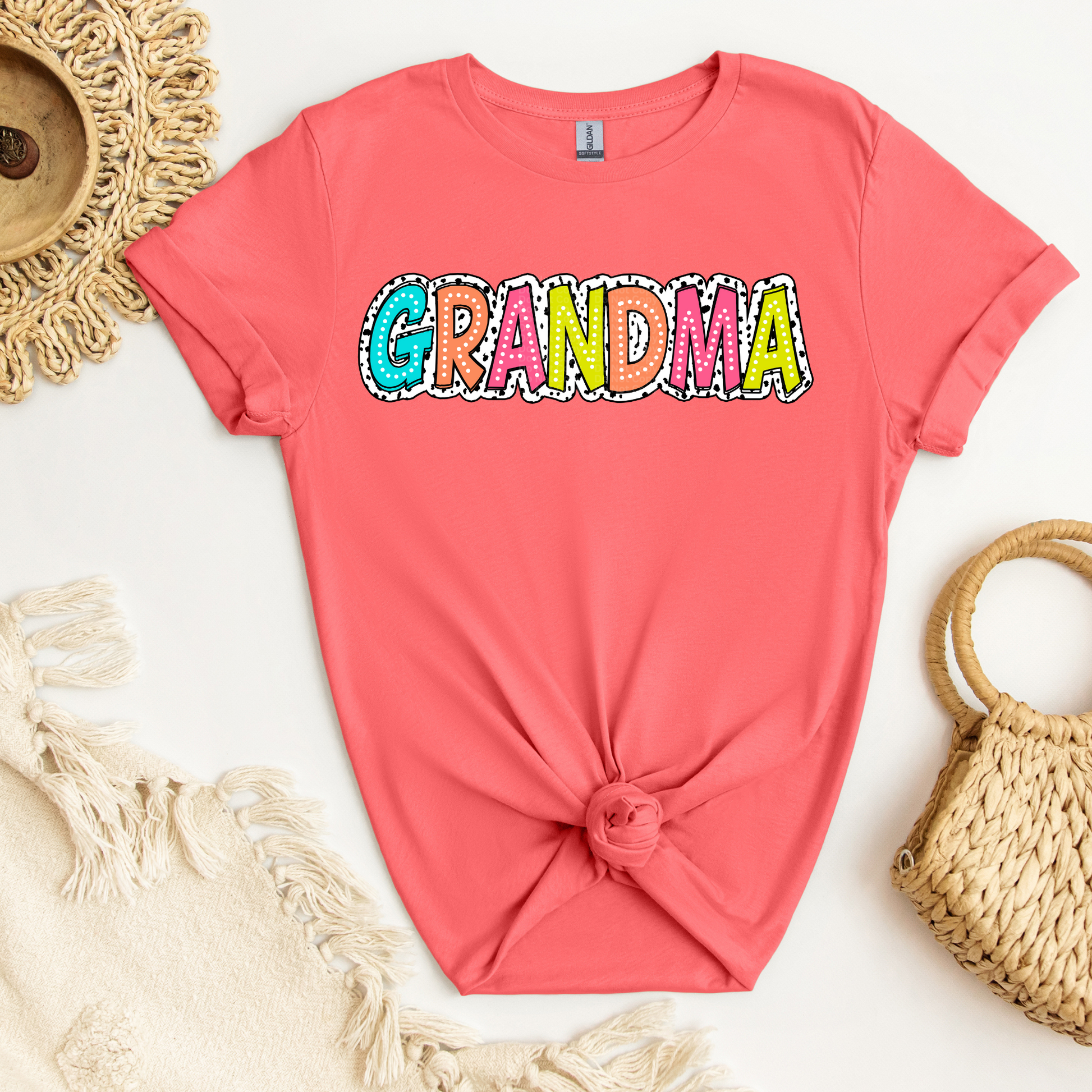 Grandma - Colorful white dotted lettering over white/black background DTF Transfer