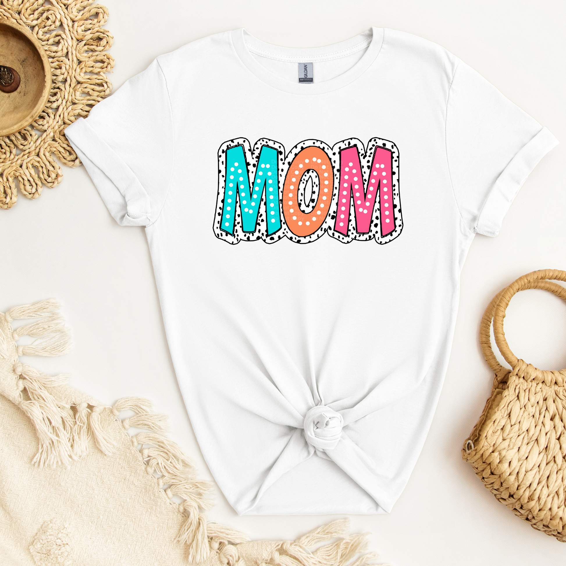 Mom - Colorful white dotted lettering over white/black background DTF Transfer