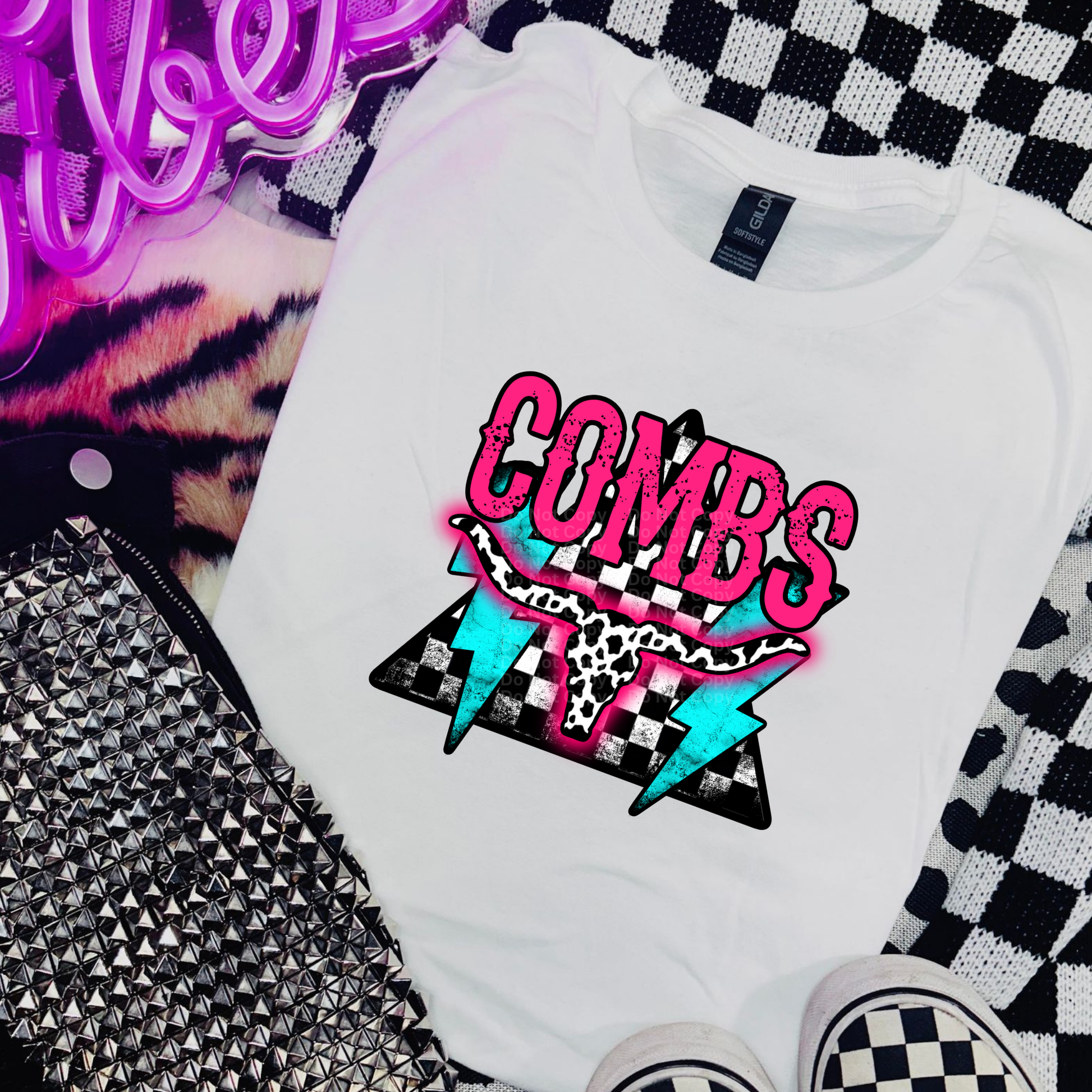 C0mbs Pink, Blue & Checkered Triangle DTF Transfer