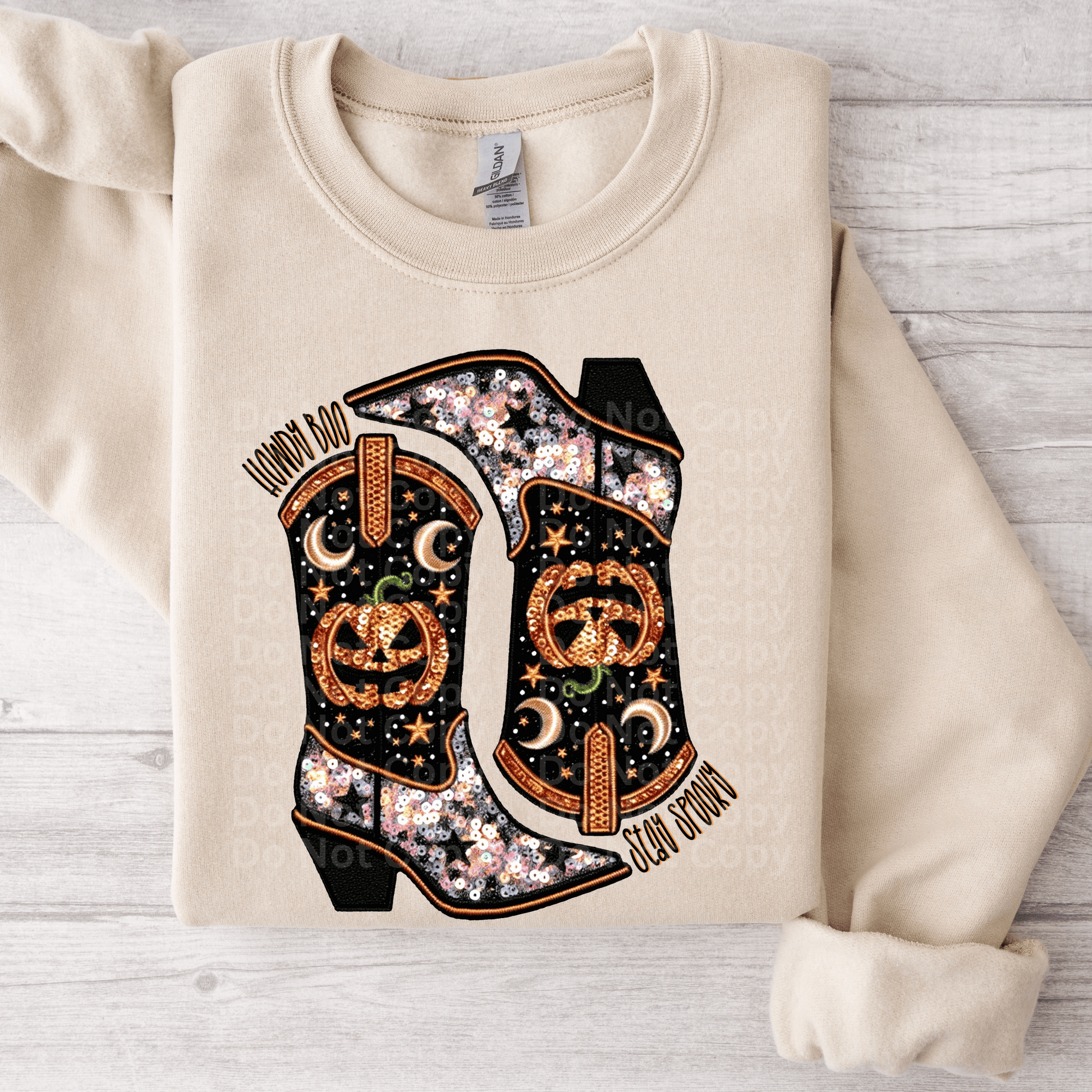 Howdy Boo Faux Sequin Boots DTF Transfer