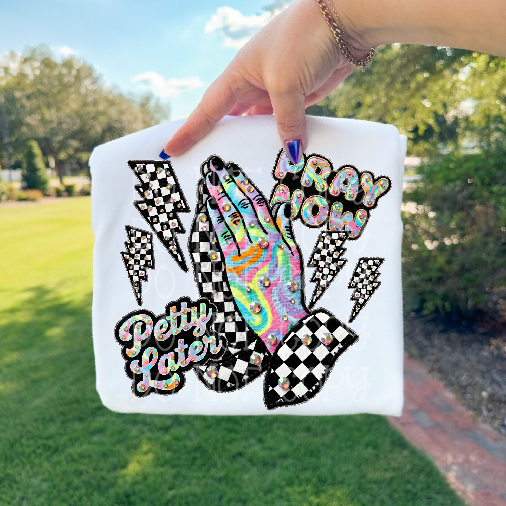Our DTF transfers are printed with a commercial DTF printer and cured to perfection. Direct to Film transfers allow you to be able to easily apply multicolor designs to many different types of fabric and materials. Transfers are very easy to use and come with instructions, the film will peel off smoothly after allowing to cool after the first press. We also print Custom designs, if you have your own png file you would like to have printed just upload it to our Custom design option!