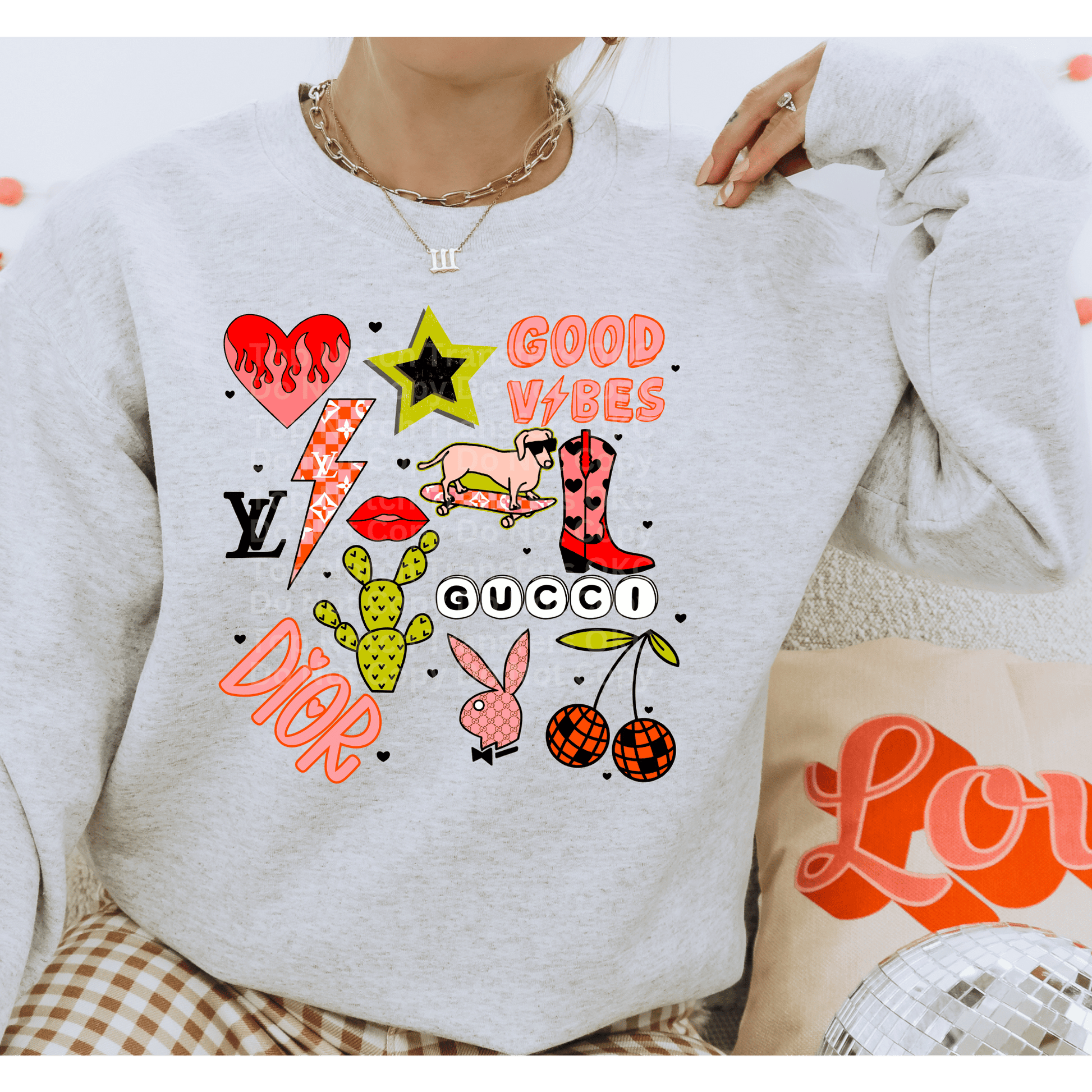 Our DTF transfers are printed with a commercial DTF printer and cured to perfection. Direct to Film transfers allow you to be able to easily apply multicolor designs to many different types of fabric and materials. Transfers are very easy to use and come with instructions, the film will peel off smoothly after allowing to cool after the first press. We also print Custom designs, if you have your own png file you would like to have printed just upload it to our Custom design option!