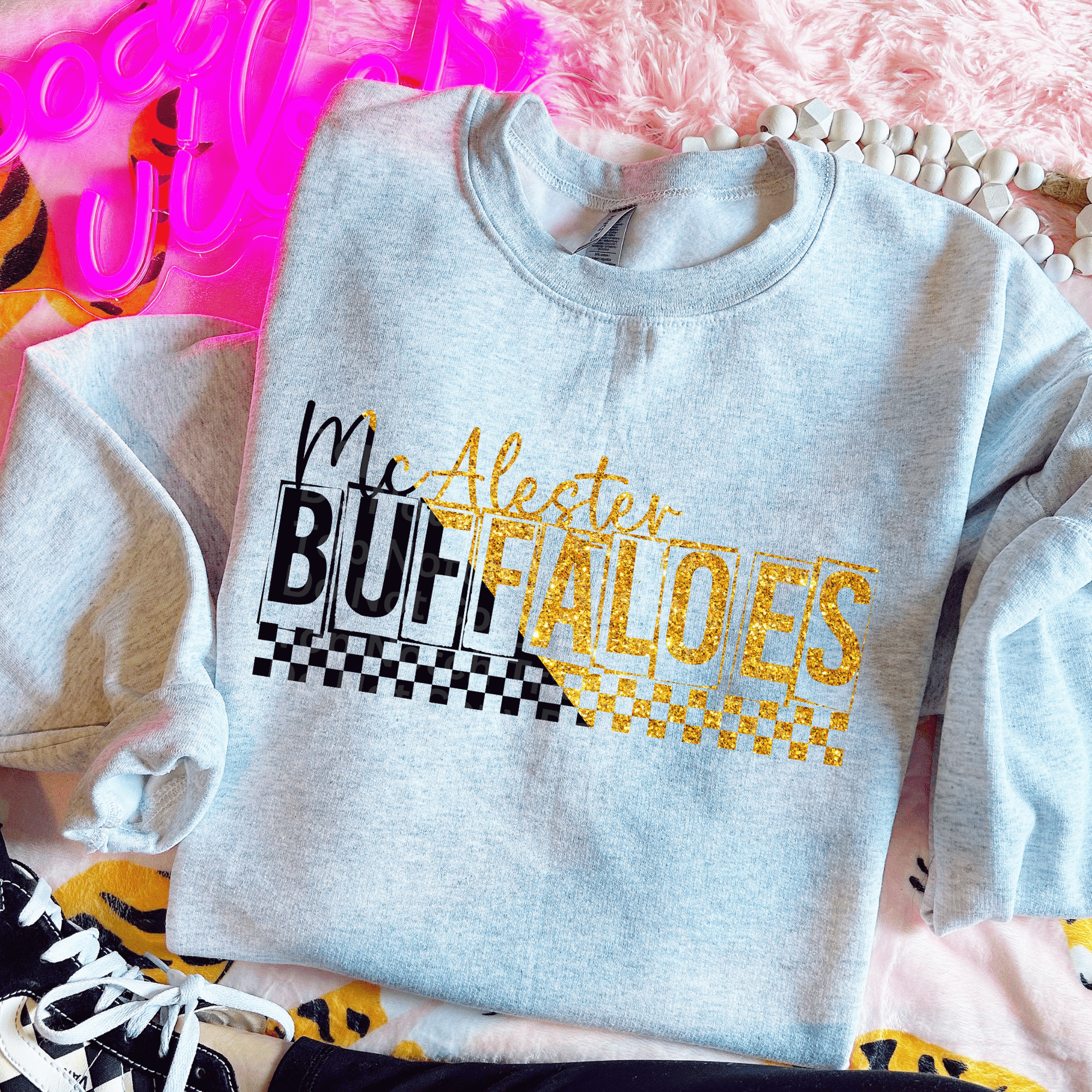 McAlester Buffaloes Blk/Gold Glitter DTF Transfer