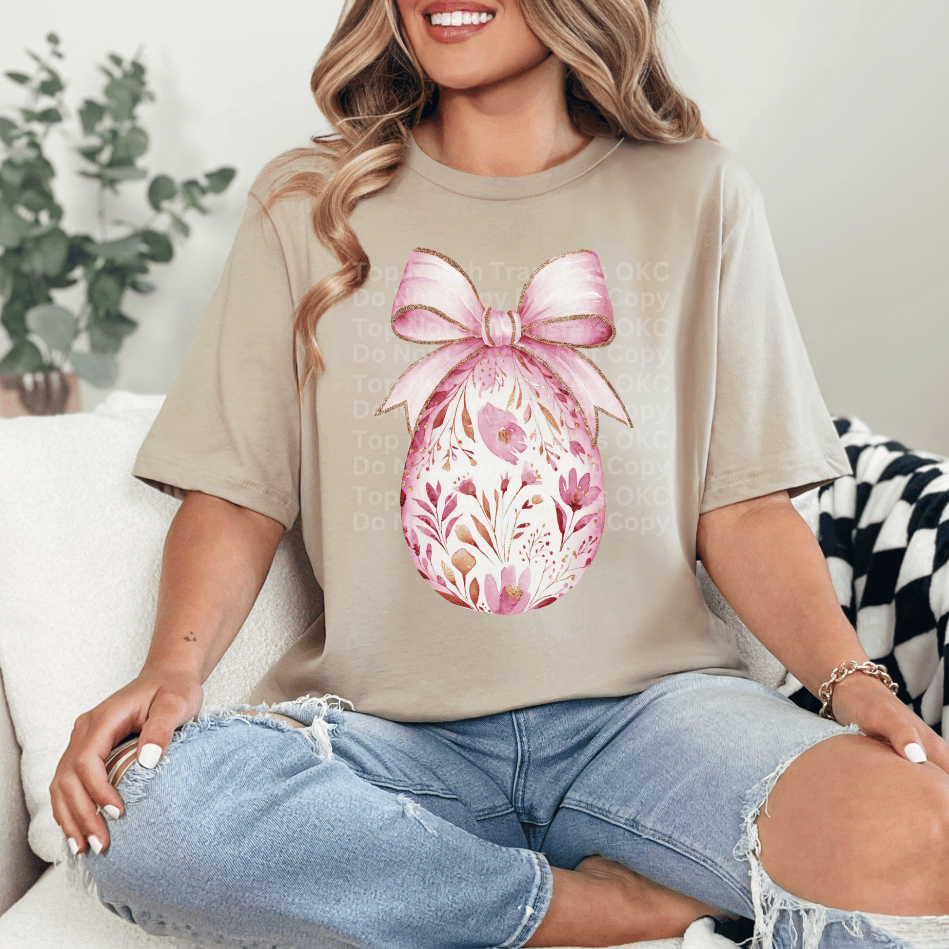 Pink Floral Egg w/ Pink Bow DTF Transfer