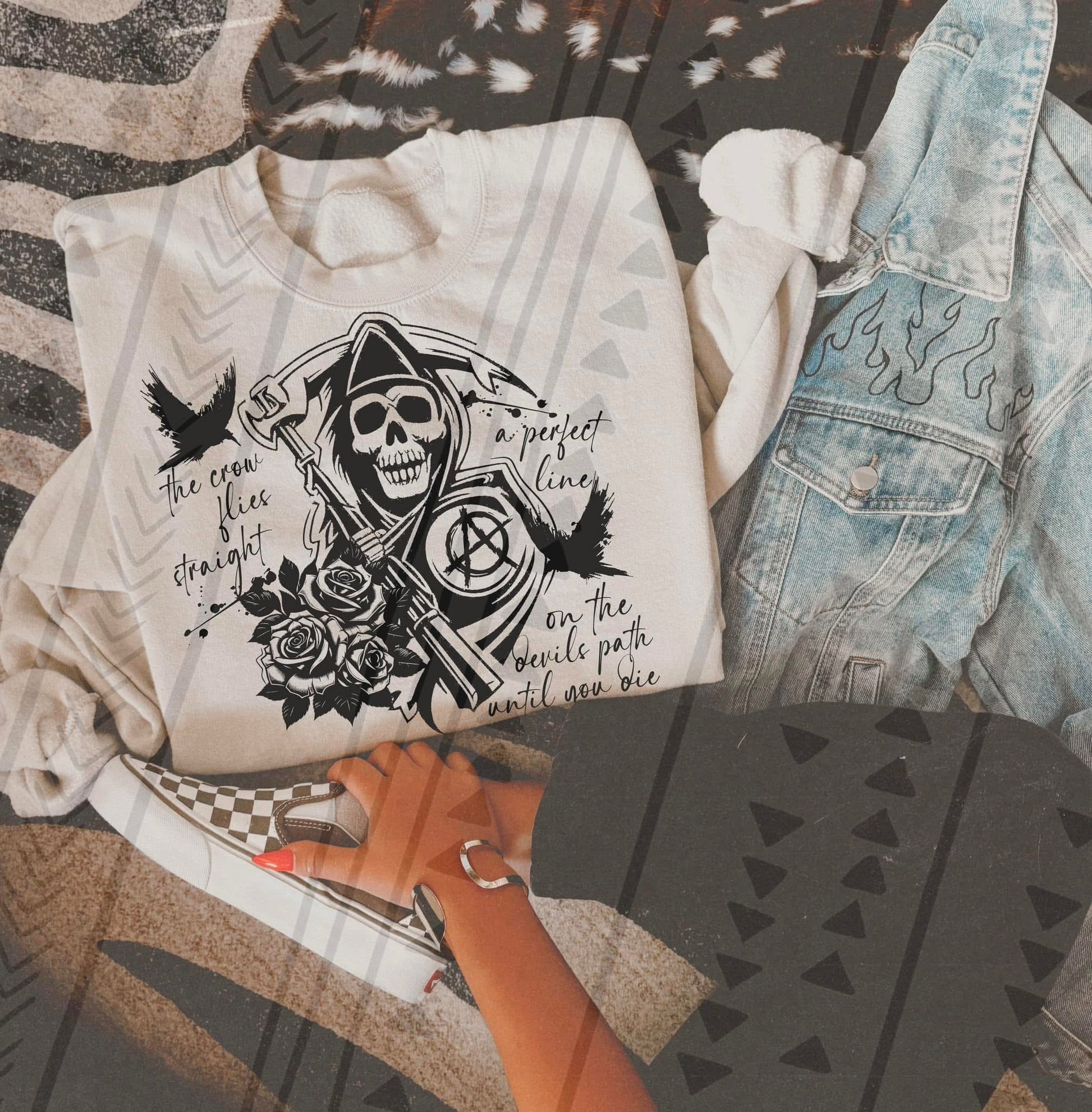 Our DTF transfers are printed with a commercial DTF printer and cured to perfection. Direct to Film transfers allow you to be able to easily apply multicolor designs to many different types of fabric and materials. Transfers are very easy to use and come with instructions, the film will peel off smoothly after allowing to cool after the first press. We also print Custom designs, if you have your own png file you would like to have printed just upload it to our Custom design option!