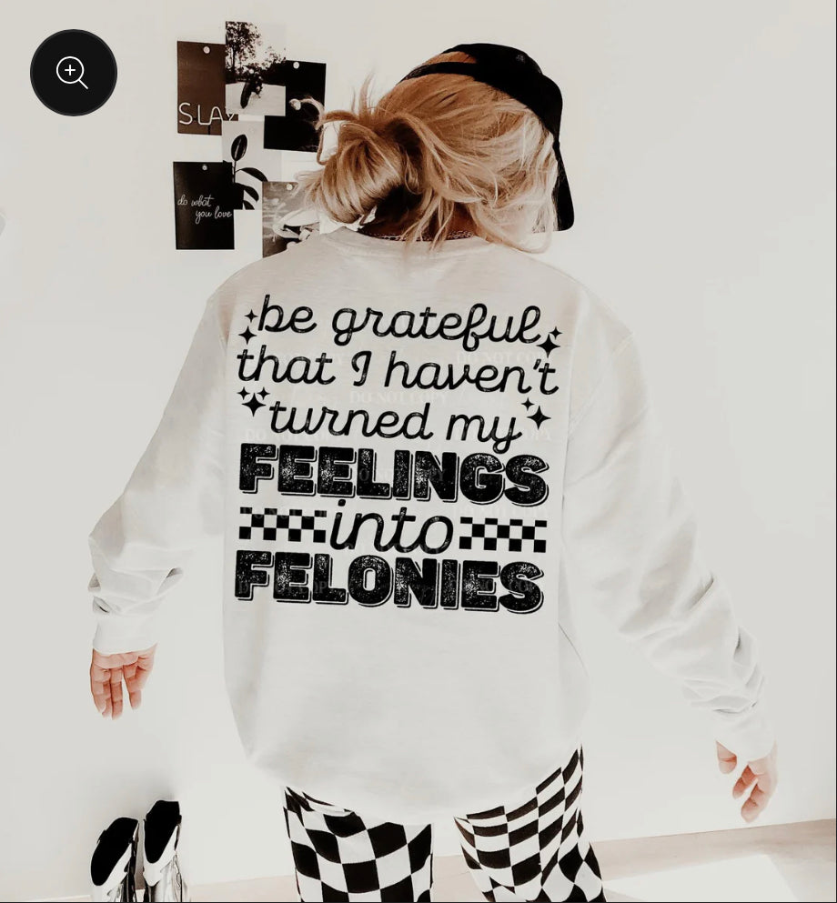 Feelings into Felonies DTF Transfer