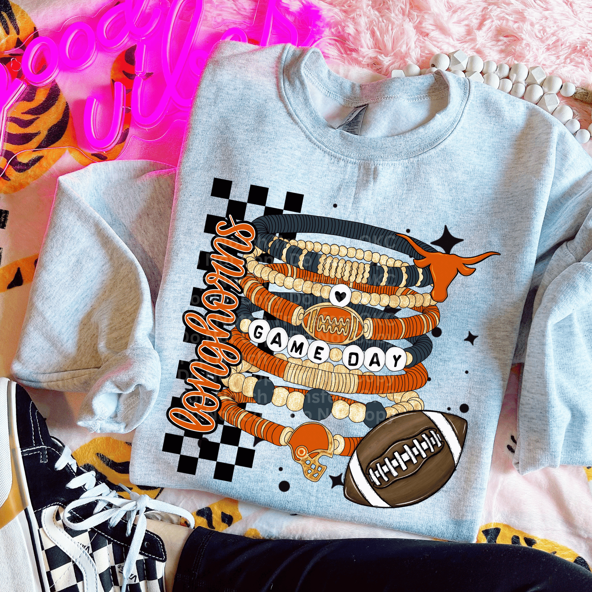 Our DTF transfers are printed with a commercial DTF printer and cured to perfection. Direct to Film transfers allow you to be able to easily apply multicolor designs to many different types of fabric and materials. Transfers are very easy to use and come with instructions, the film will peel off smoothly after allowing to cool after the first press. We also print Custom designs, if you have your own png file you would like to have printed just upload it to our Custom design option!