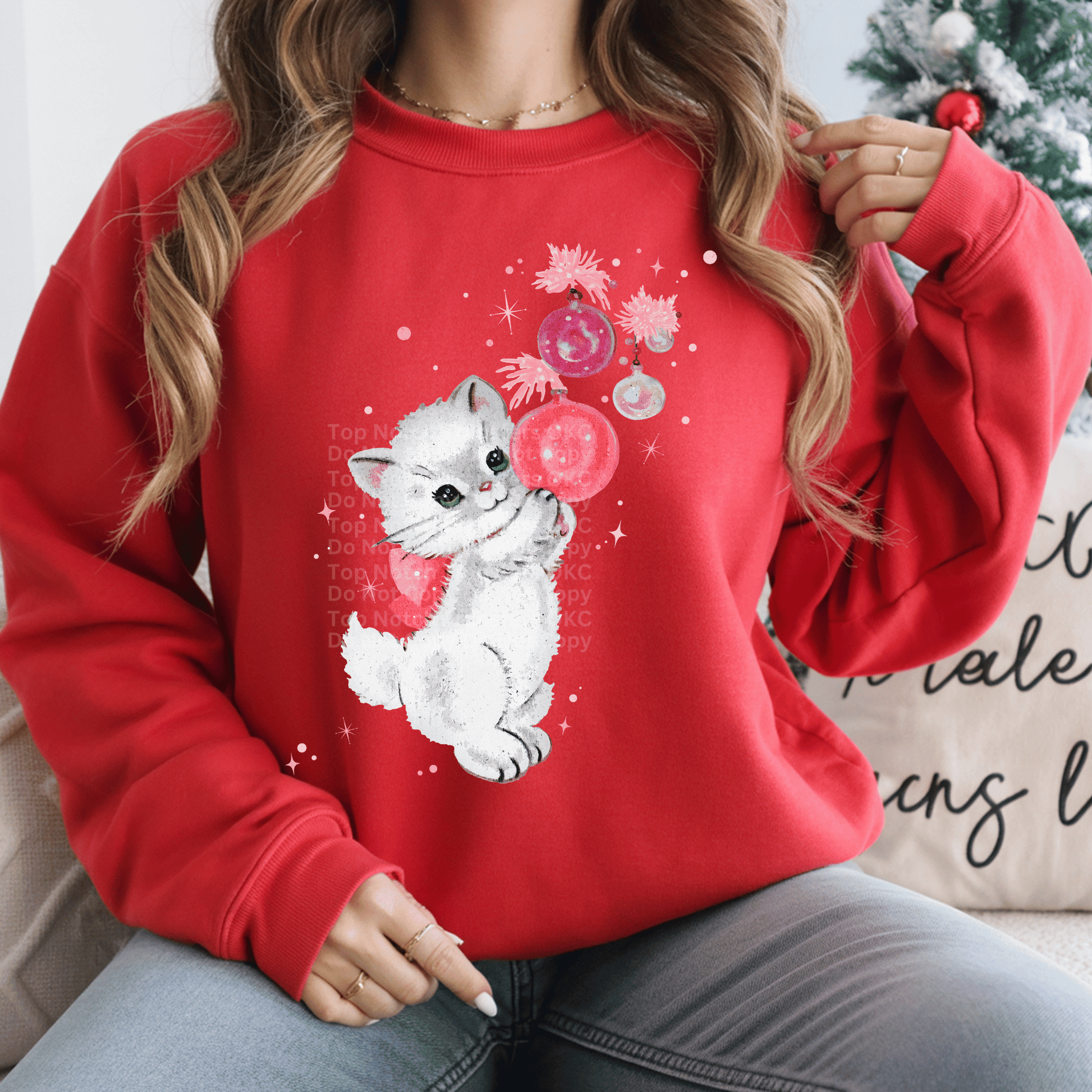 Vintage Kitten Playing w/ Christmas Ornament DTF Transfer