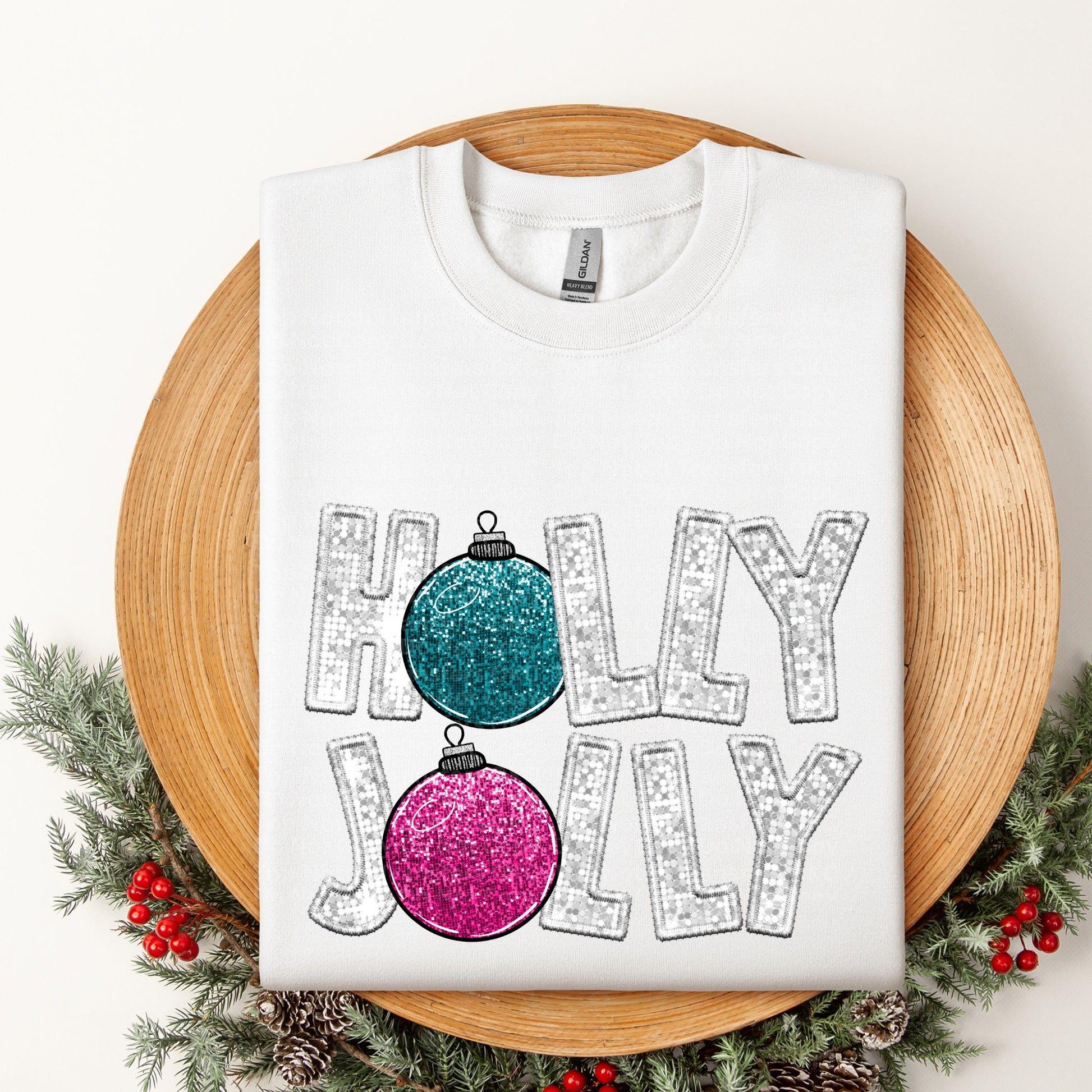 Holly Jolly Pink & Blue Ornaments Faux Glitter DTF Transfer