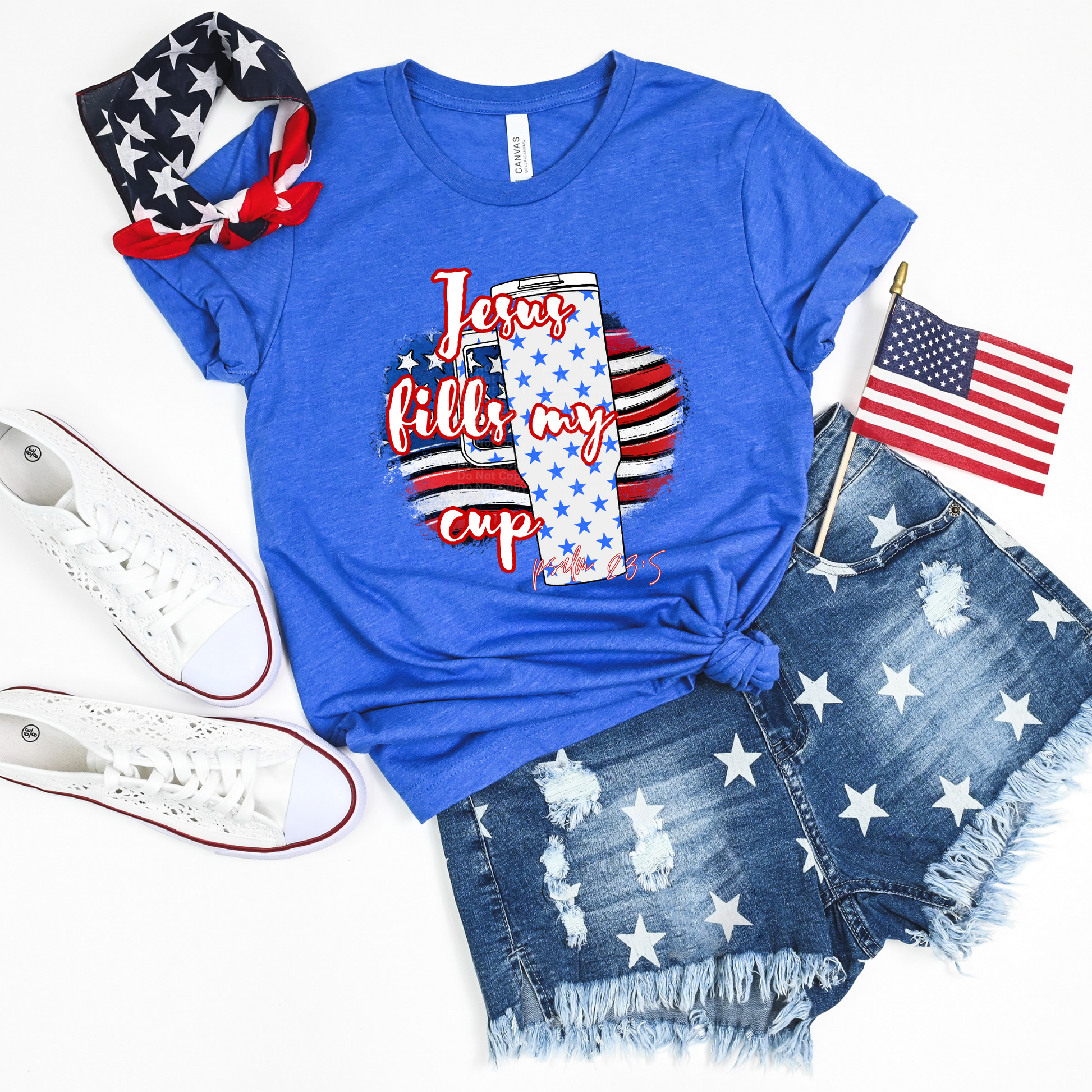 Jesus Fills My Cup White Cup Flag Background DTF Transfer