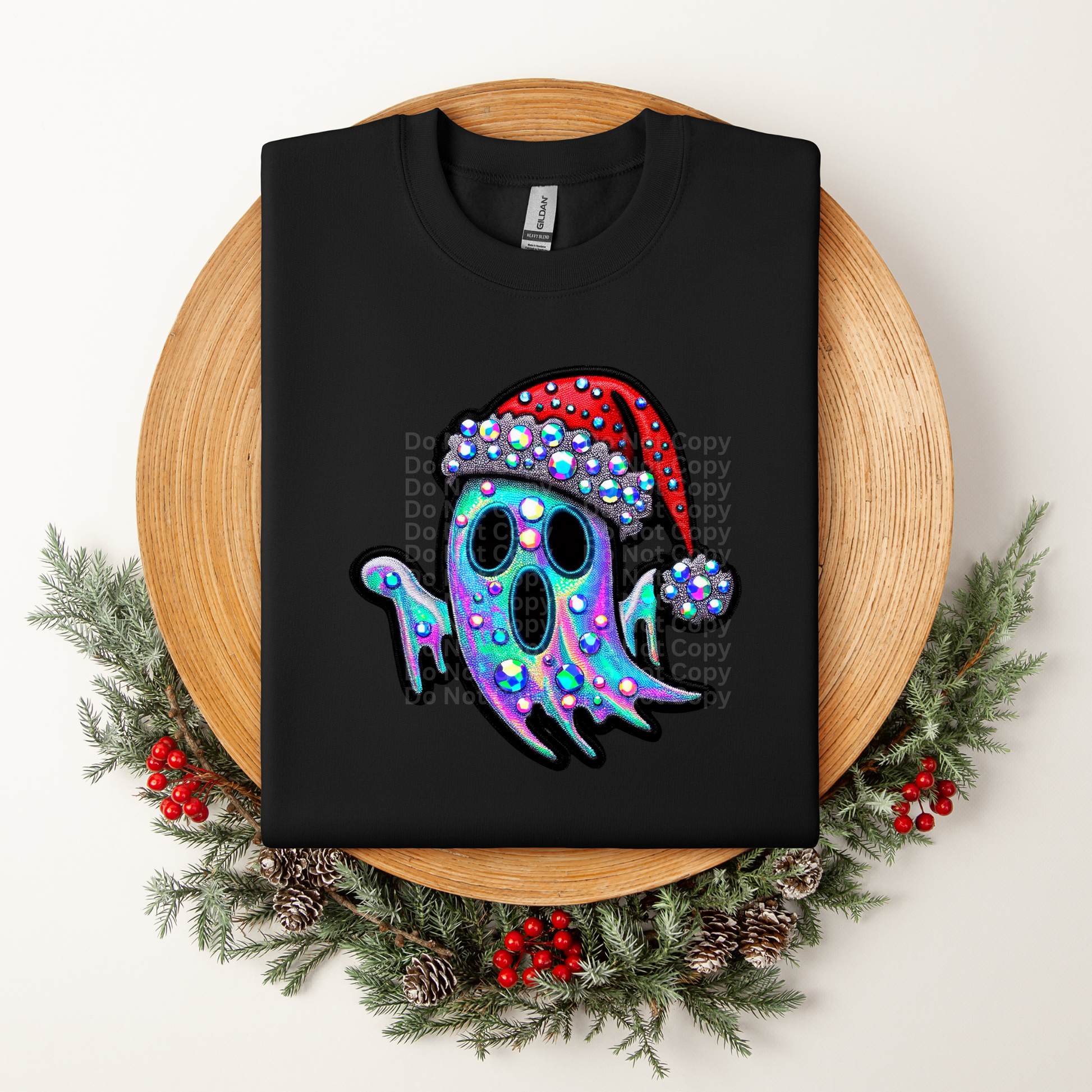 Ghost with Santa Hat and Faux Rhinestones DTF Transfer