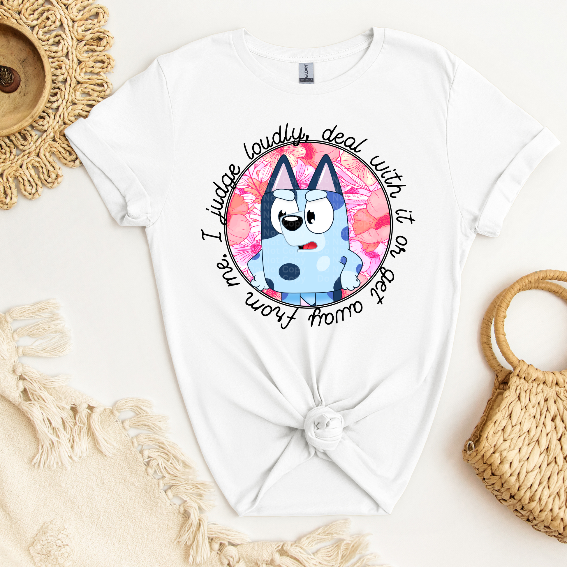 Blue Dog - I Judge Loudly Deal with It or Get Away (Black) DTF Transfer