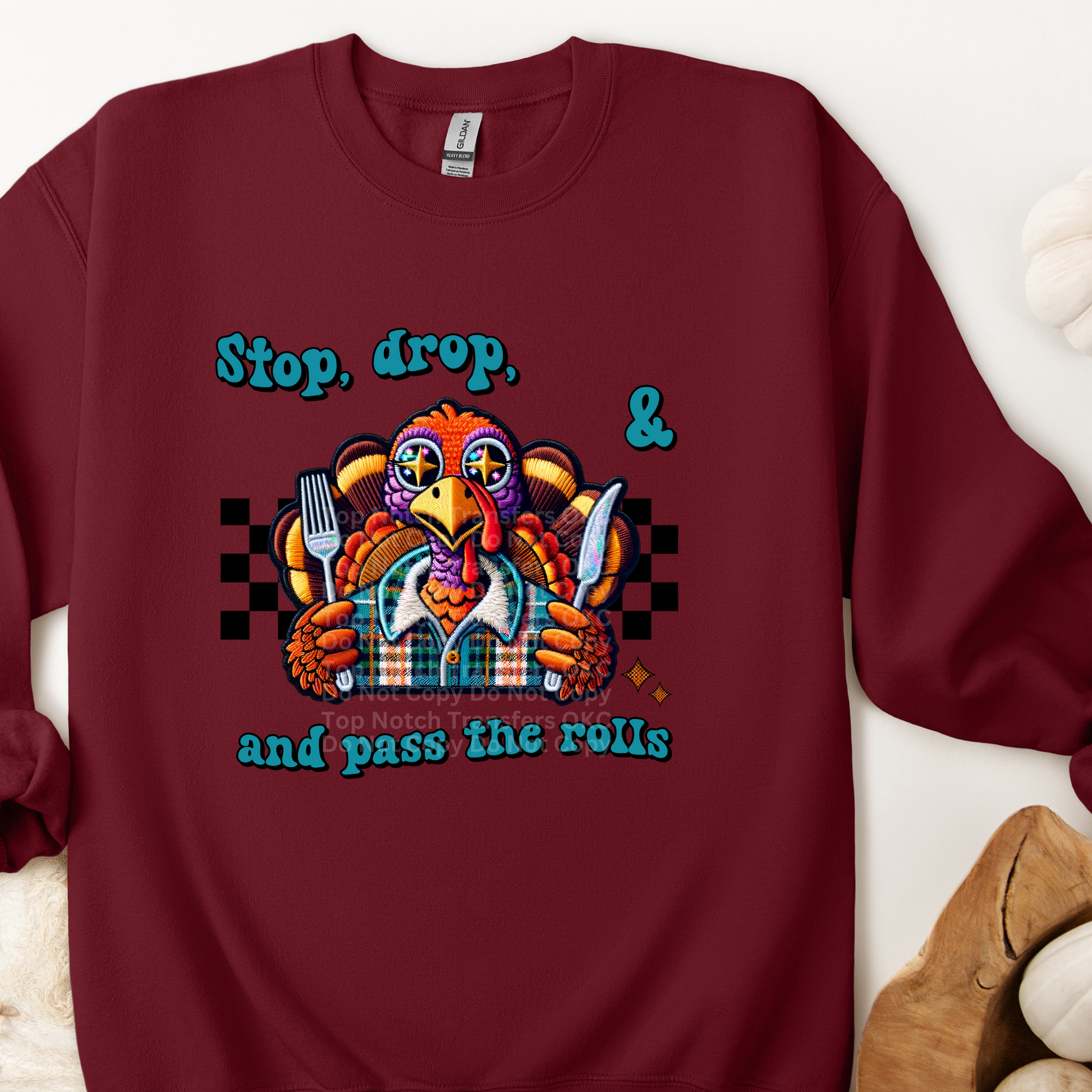 Stop Drop & Pass the Rolls - Faux Embroidery DTF Transfer