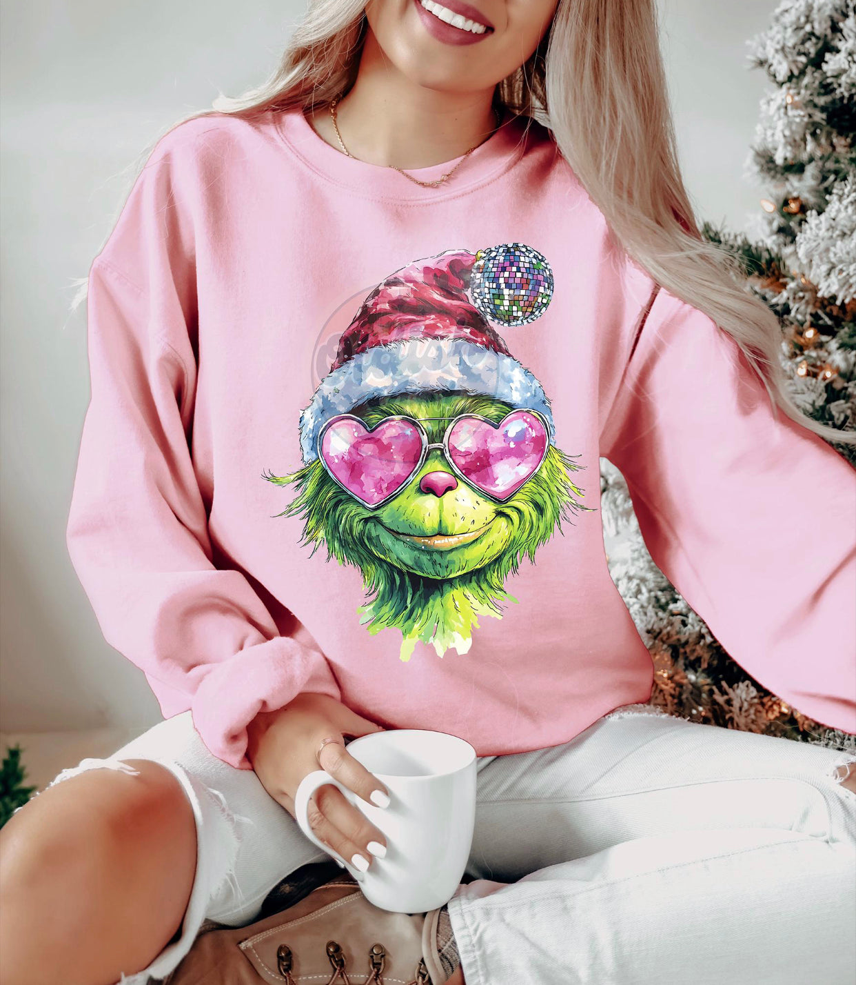 Green Guy with Disco ball Santa hat & heart glasses DTF Transfer